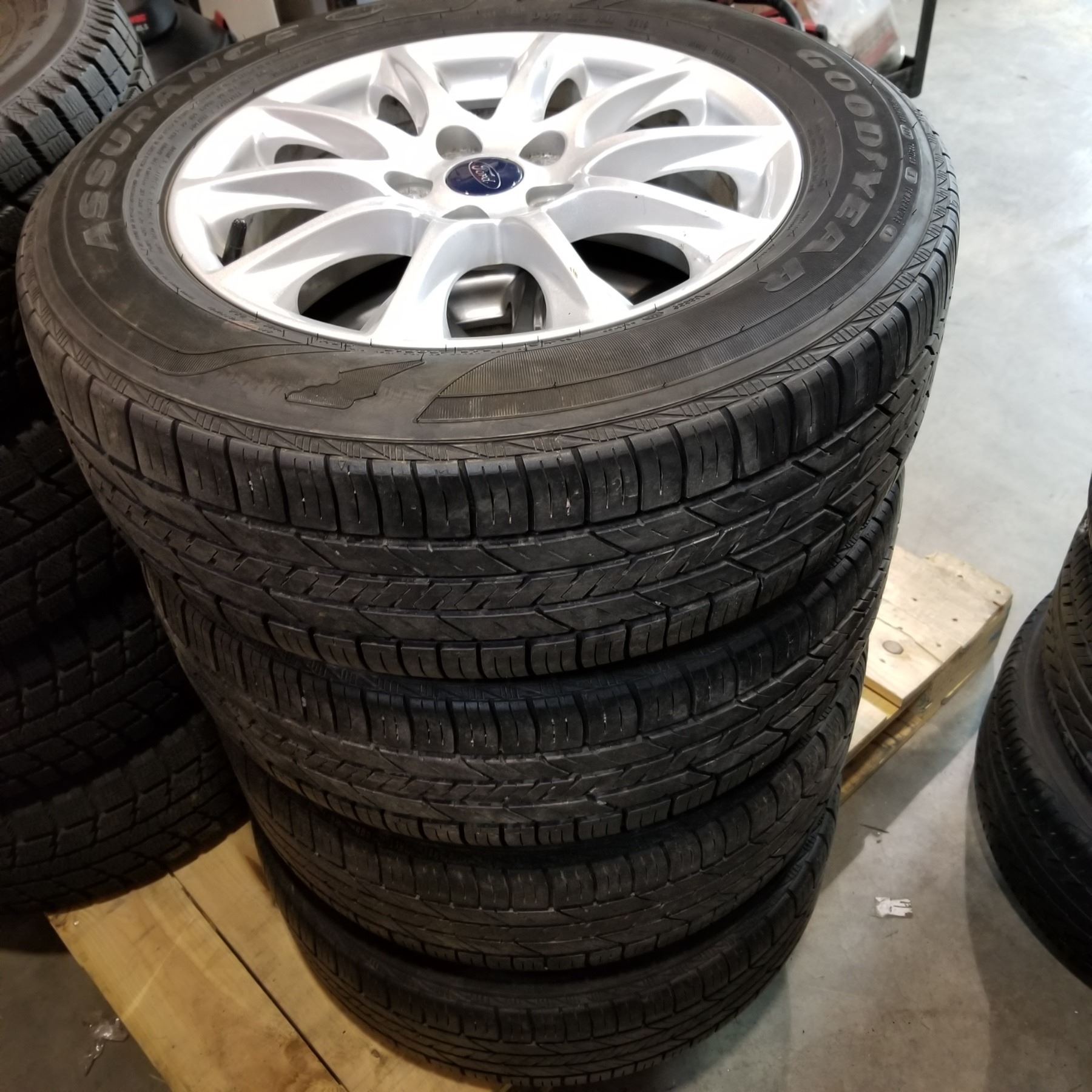 SET OF 4 GOOD YEAR ASSURANCE 215/60 R16 TIRES ON 5 BOLT FORD RIMS