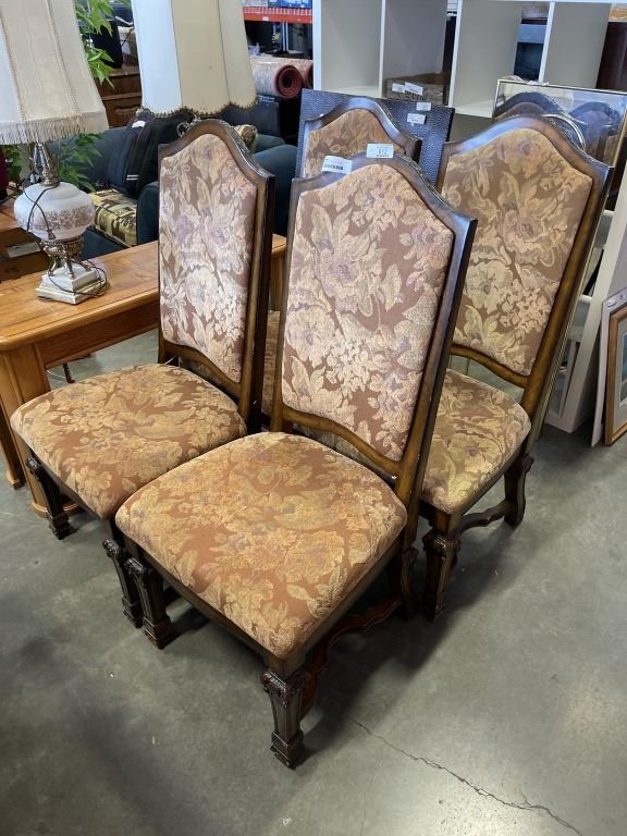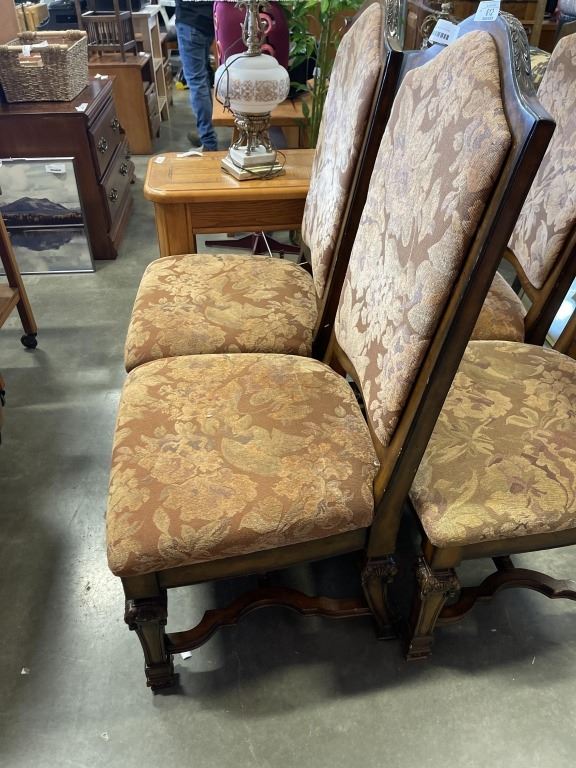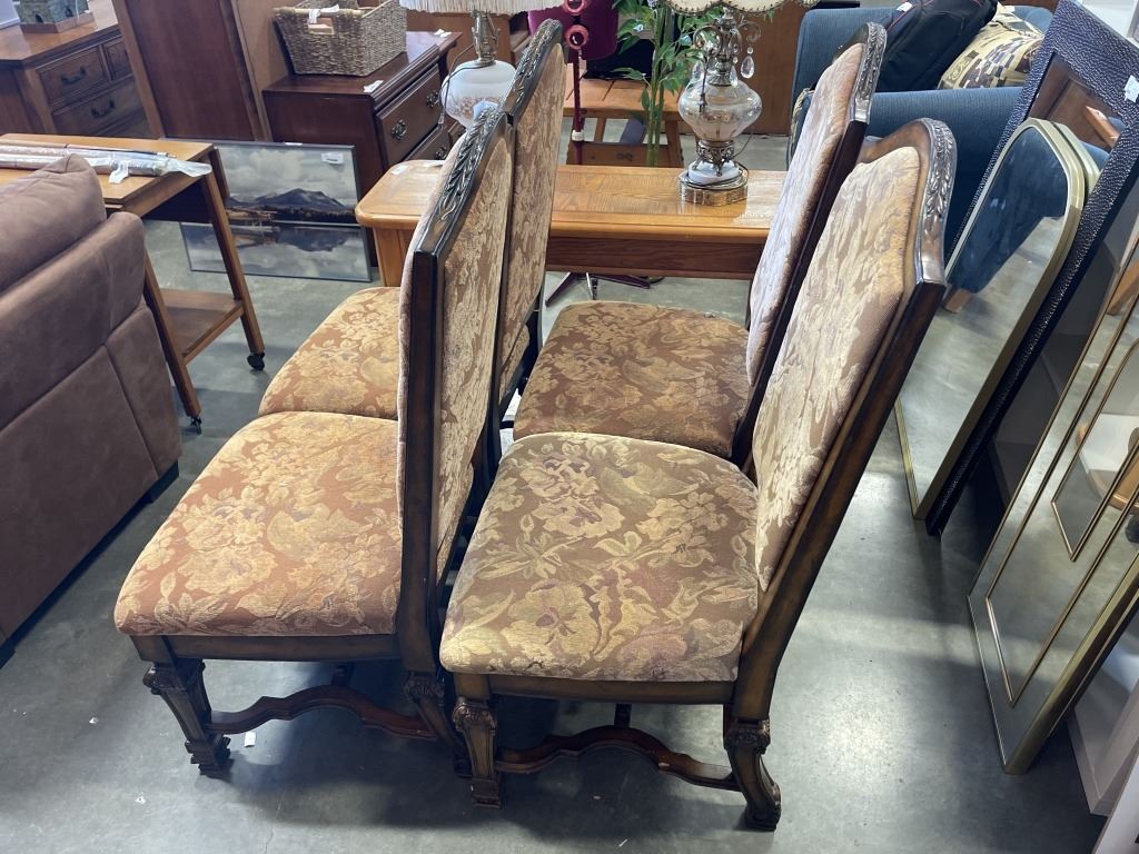 SET OF 4 HIGHLEY DECORATED AND CARVED DINING CHAIRS
