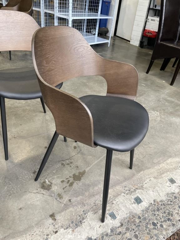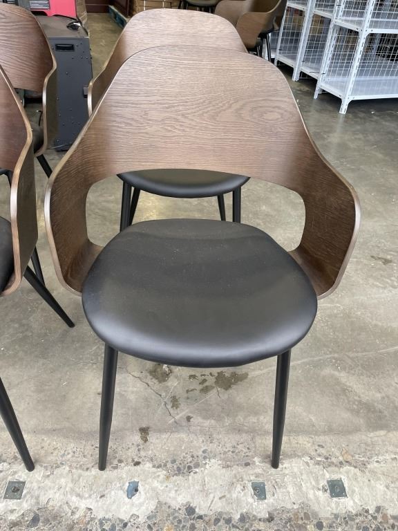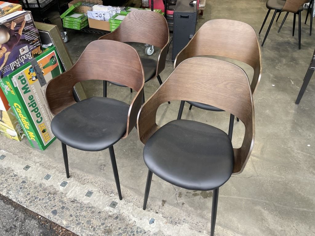 SET OF 4 MODERN BENTWOOD AND BLACK LEATHER DINING CHAIRS