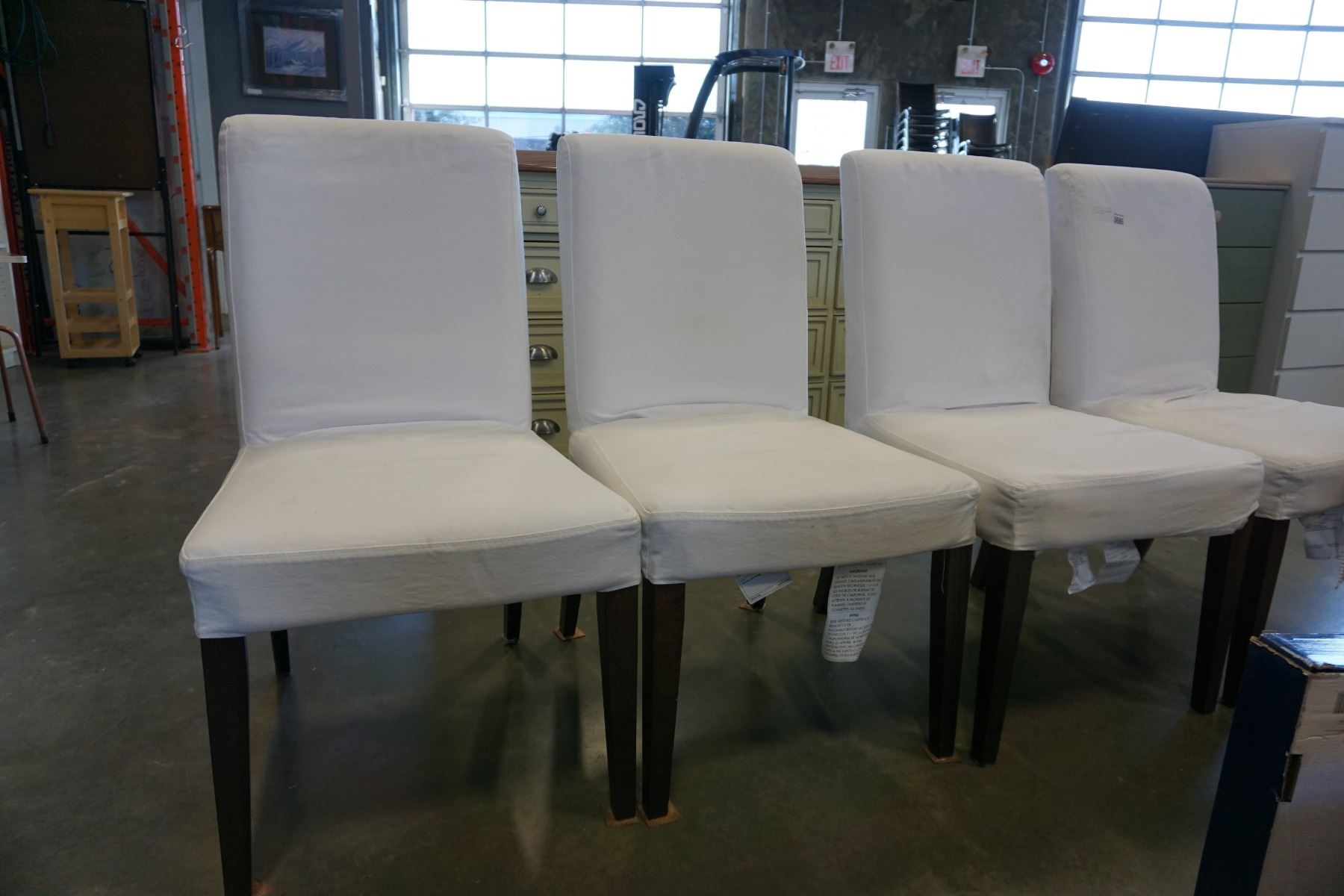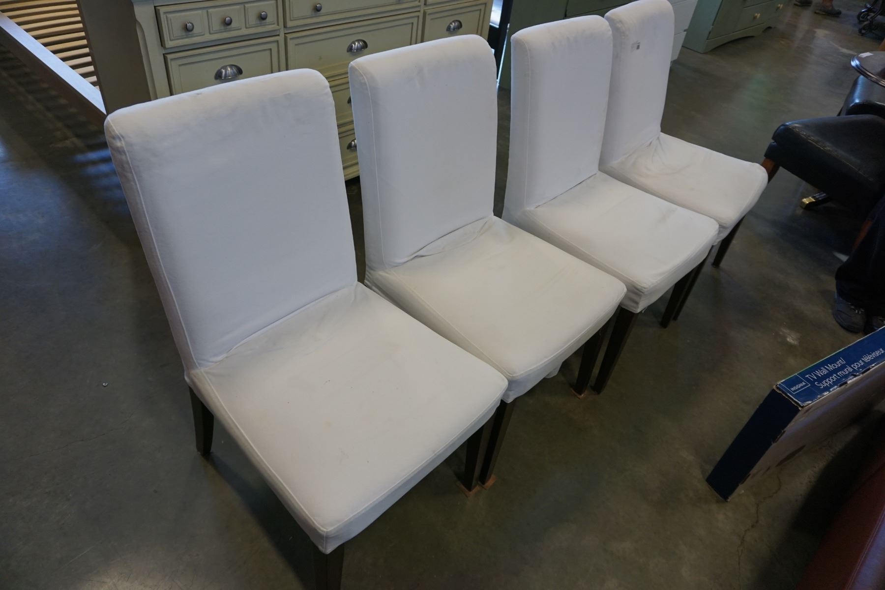 SET OF 4 WHITE UPHOLSTERED DINING CHAIRS