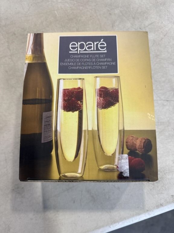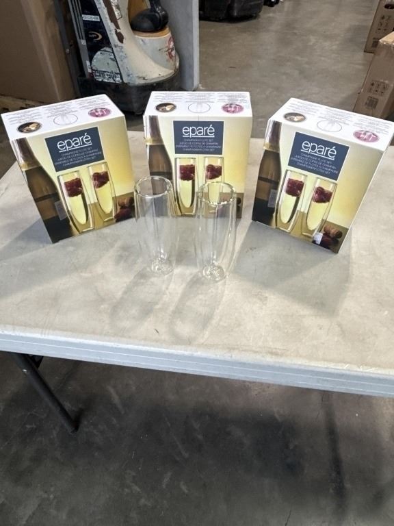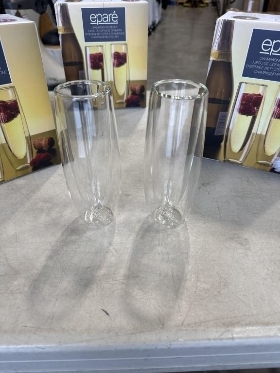 SET OF 6 NEW DUAL WALL INSULATED CHAMPAGNE FLUTES, 5OZ, 3 SETS OF 2, DISHWASHER SAFE, RETAIL VALUE $80