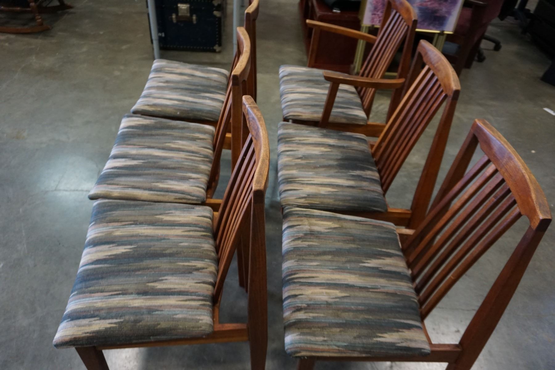SET OF 6 TEAK CHAIRS W/ FABRIC CUSHIONS