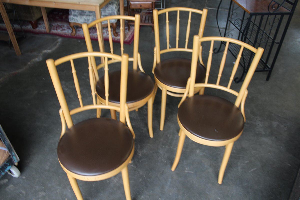 SET OF FOUR LEATHER SEAT BENTWOOD CHAIRS