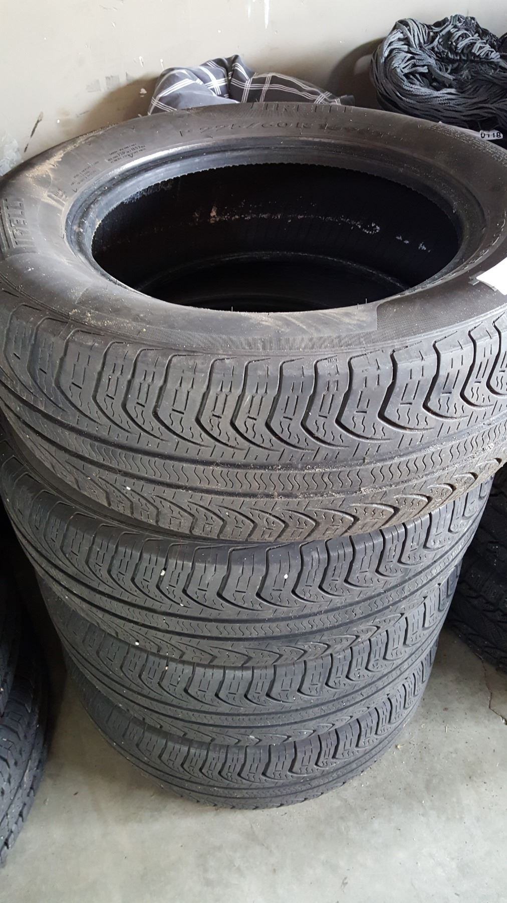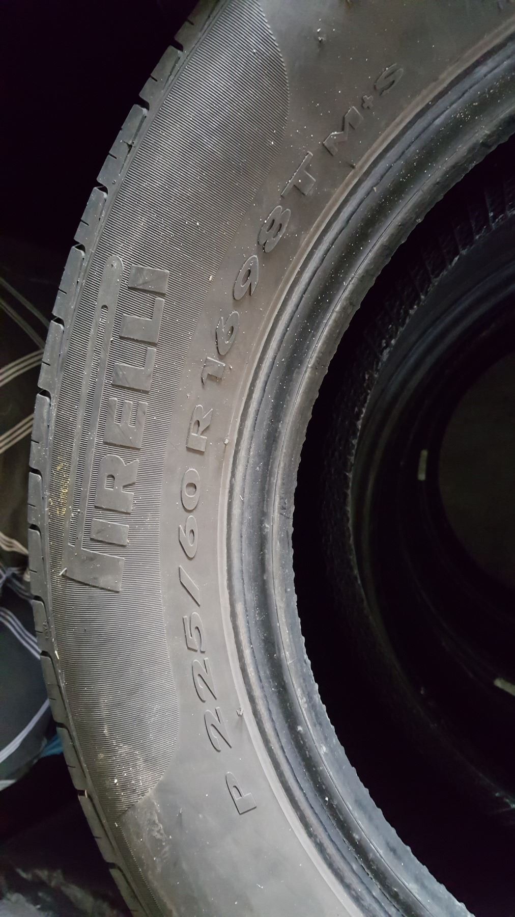SET OF FOUR PIRELLI P225 60R16 INCH TIRES AT 65 PER CENT