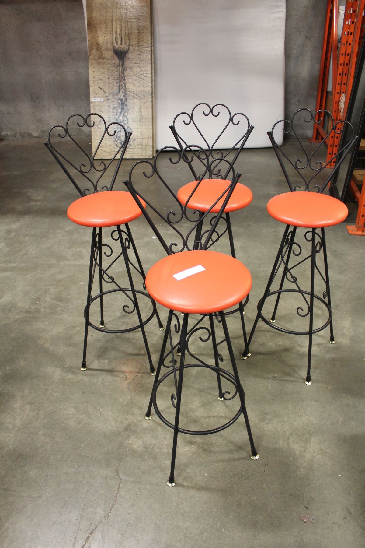 SET OF FOUR RETRO IRON AND LEATHER BARSTOOLS