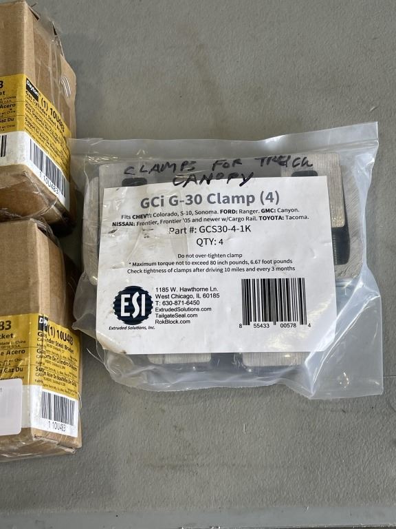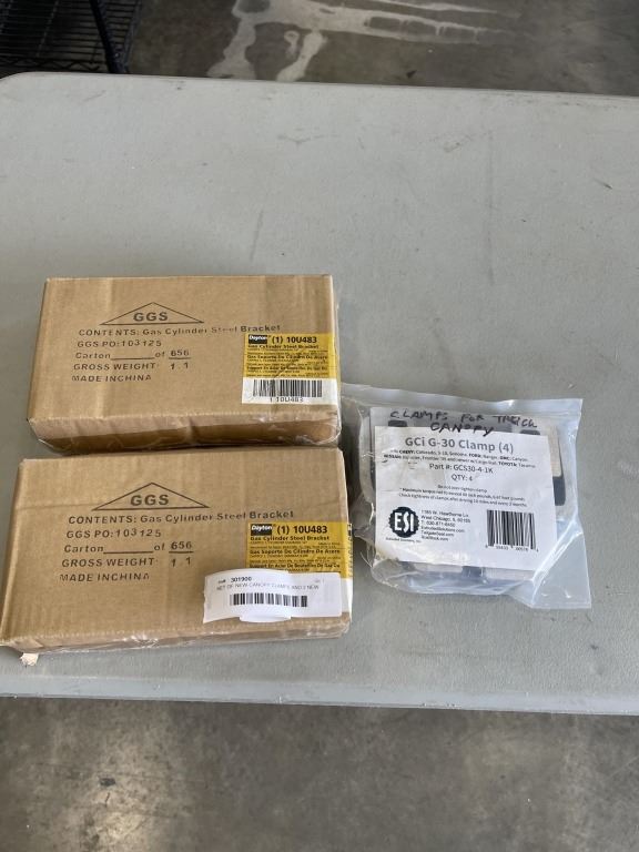 SET OF NEW CANOPY CLAMPS AND 2 NEW GAS CYCLINDER STEEL BRACKETS FOR WELDING