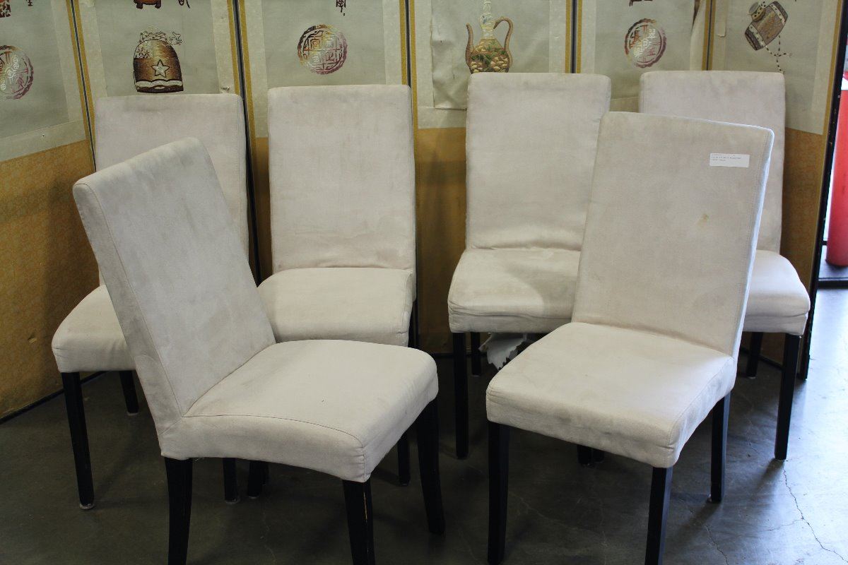 SET OF SIX WHITE MICROFIBRE DINING CHAIRS