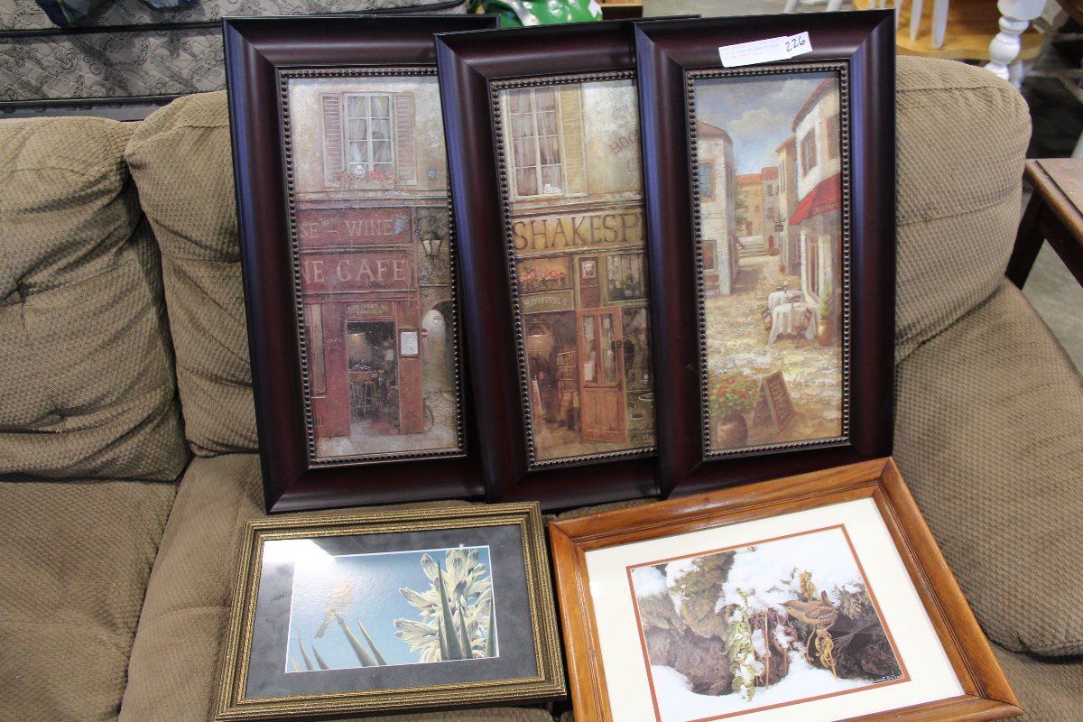 SET OF THREE DESIGNER PICTURES AND TWO OTHER PRINTS