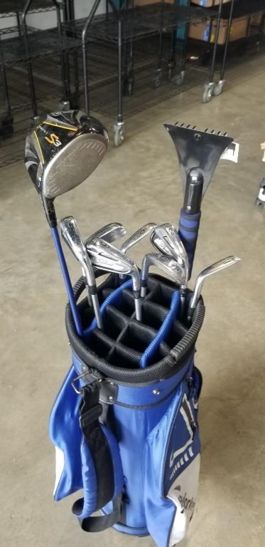 SET OF TITLEIST AP2 FORGED IRONS, TAYLORMADE BLUIE GOLF BAG AND COBRA S3 DRIVER, RIGHT HANDED