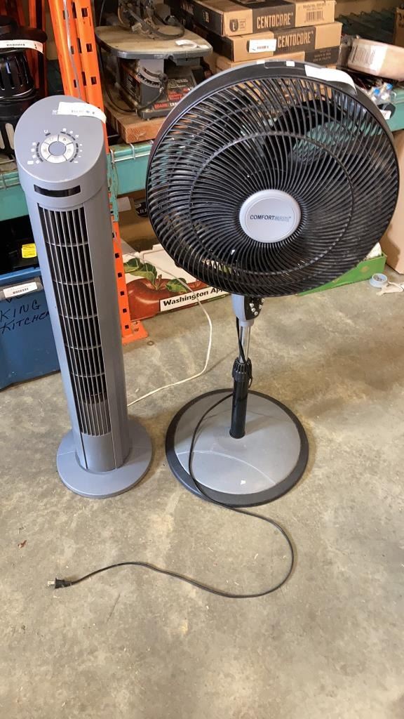 SEVILLE CLASSICS TOWER FAN AND COMFORTMATE FLOOR FAN BOTH WORKING
