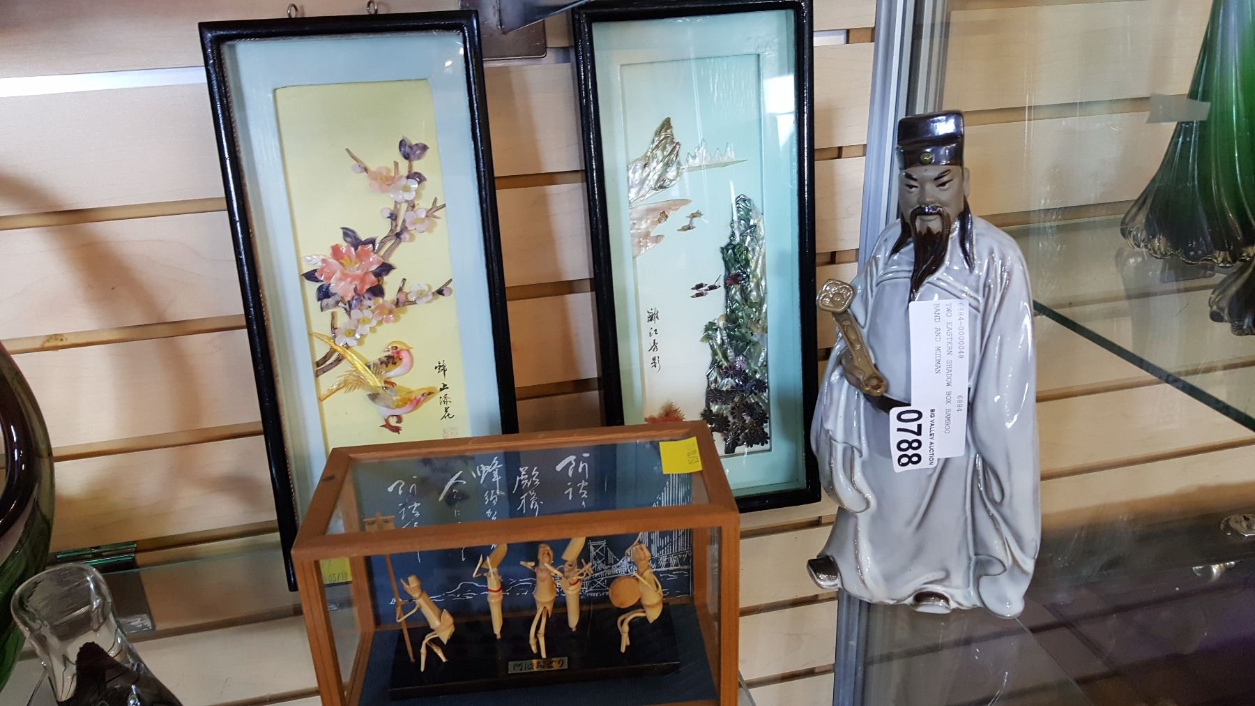 SHADOW BOX, MUDMAN FIGURE, AND EASTERN PICTURES