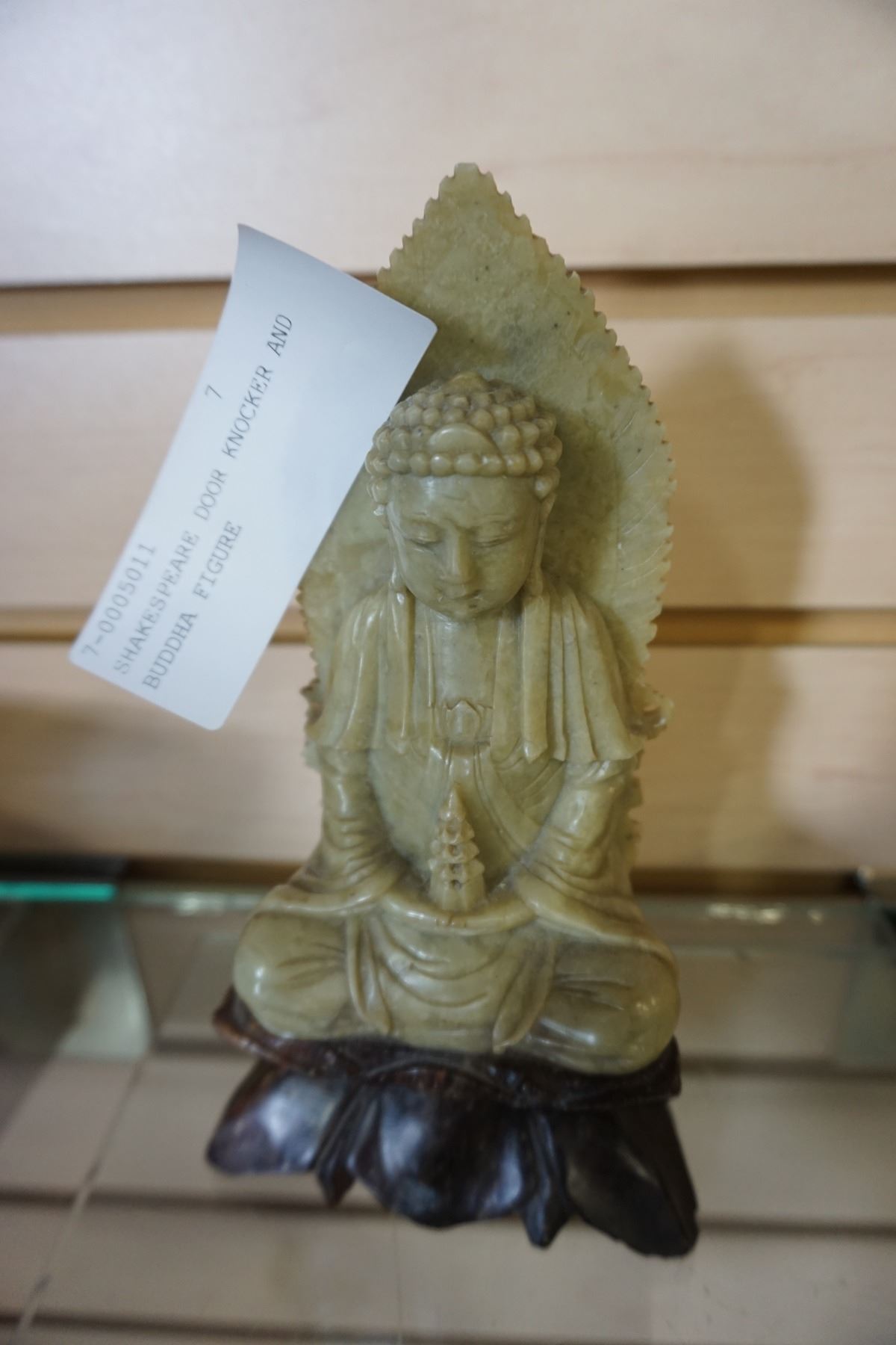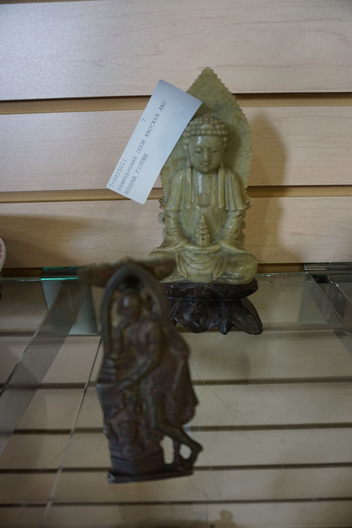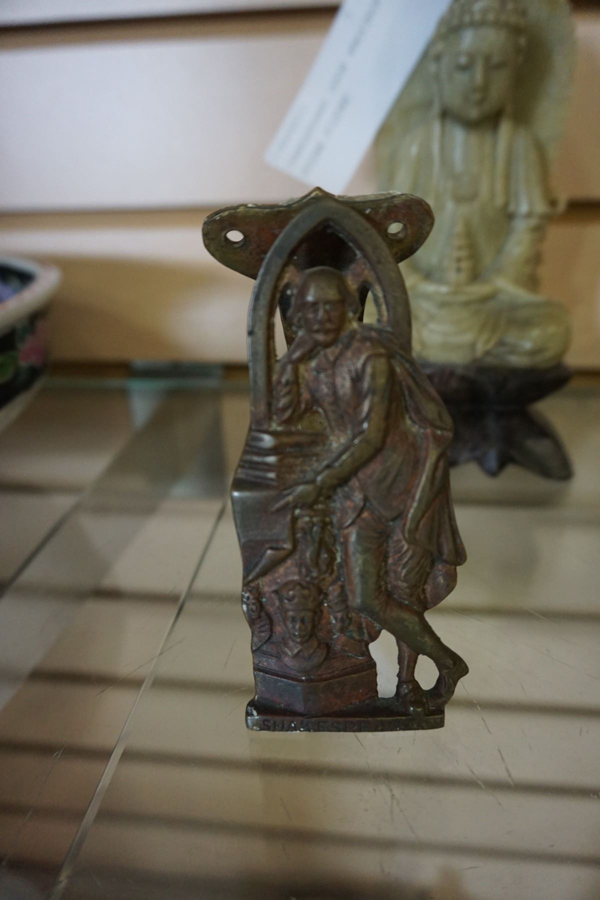 SHAKESPEARE DOOR KNOCKER AND BUDDHA FIGURE