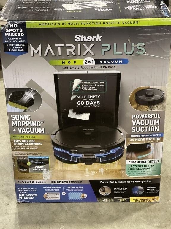SHARK MATRIX PLUS 2-IN-1 WIFI SELF EMPTYING ROBOT VACUUM AND SONIC MOP - TESTED WORKING, RETAIL $599