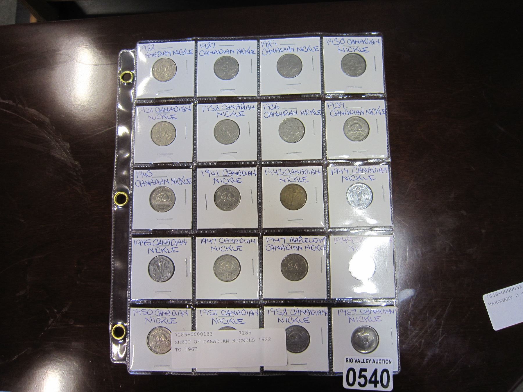 SHEET OF CANADIAN NICKELS 1922 TO 1967