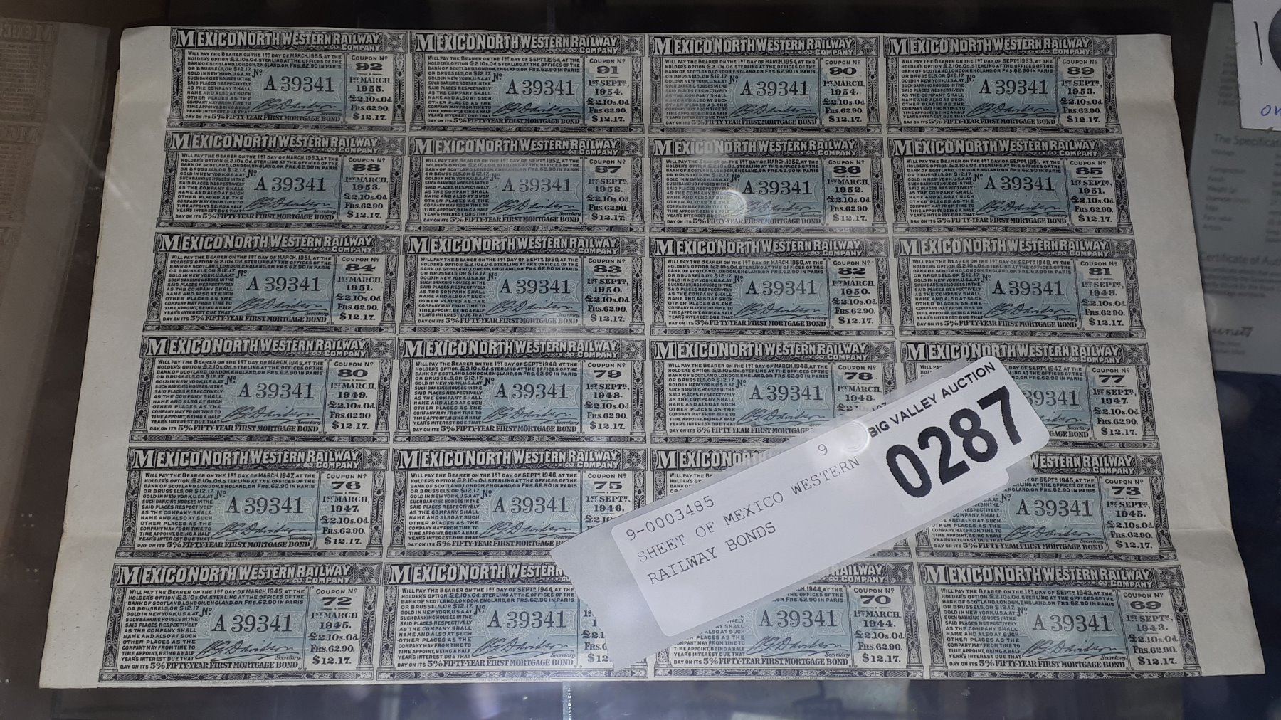 SHEET OF MEXICO WESTERN RAILWAY BONDS