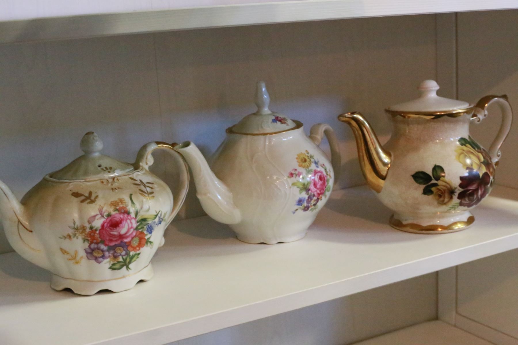 SHEKLF LOT OF TEAPOTS