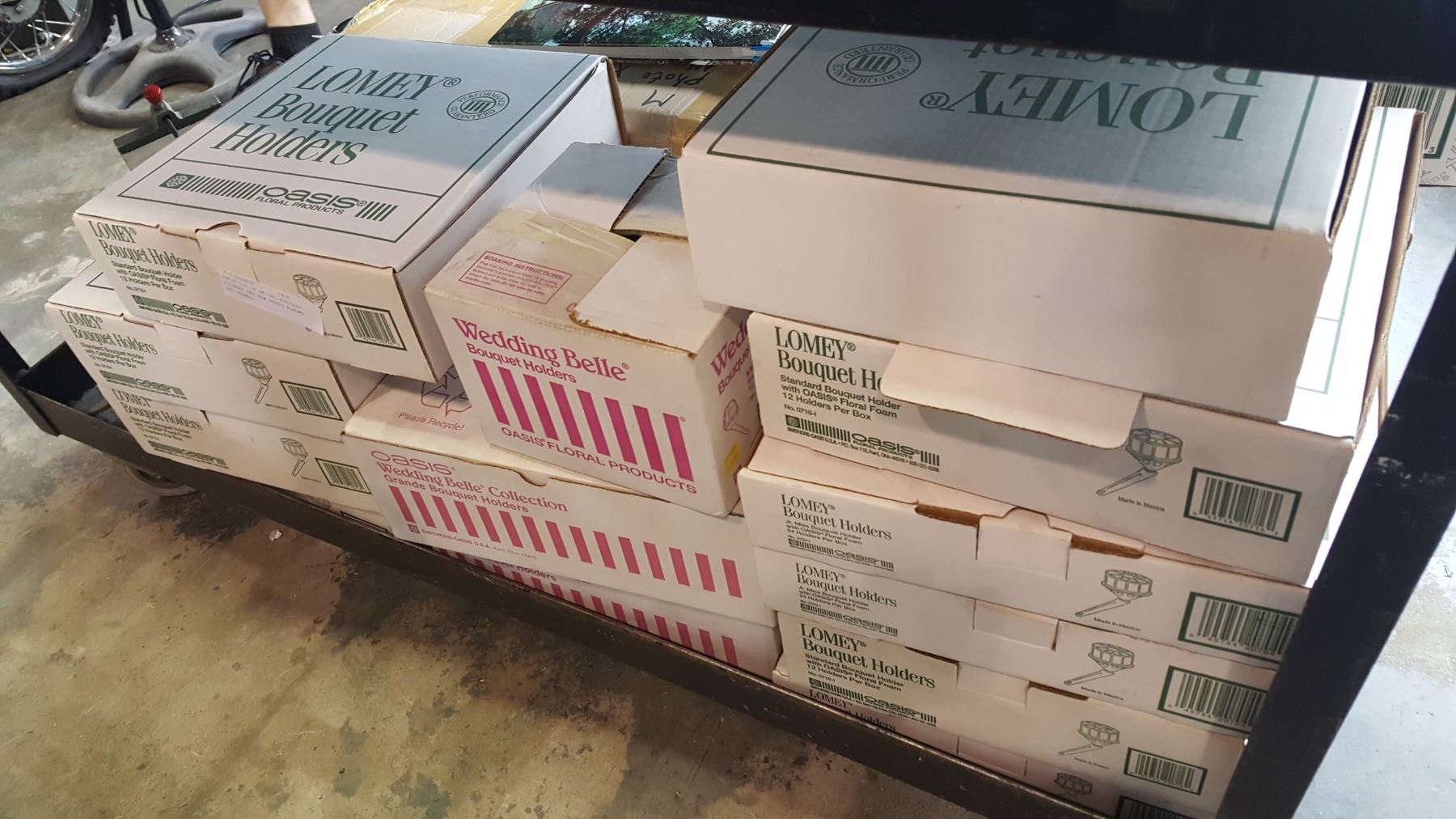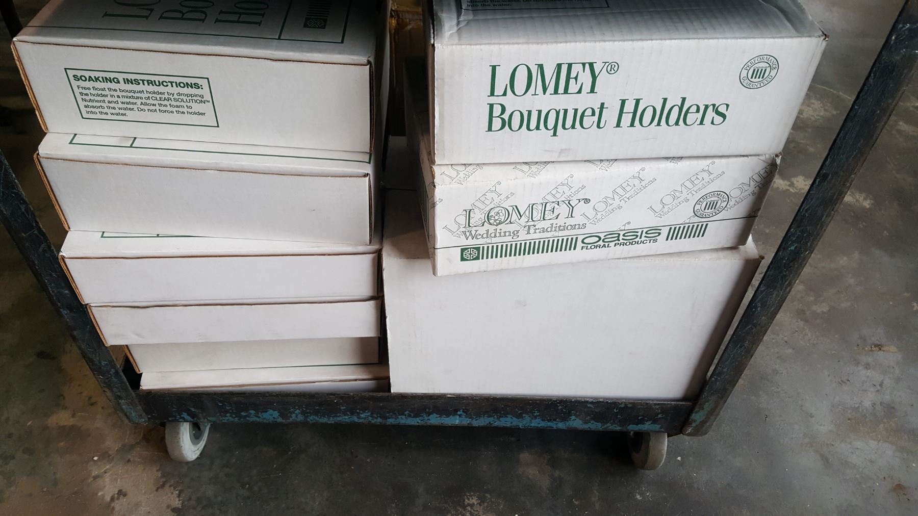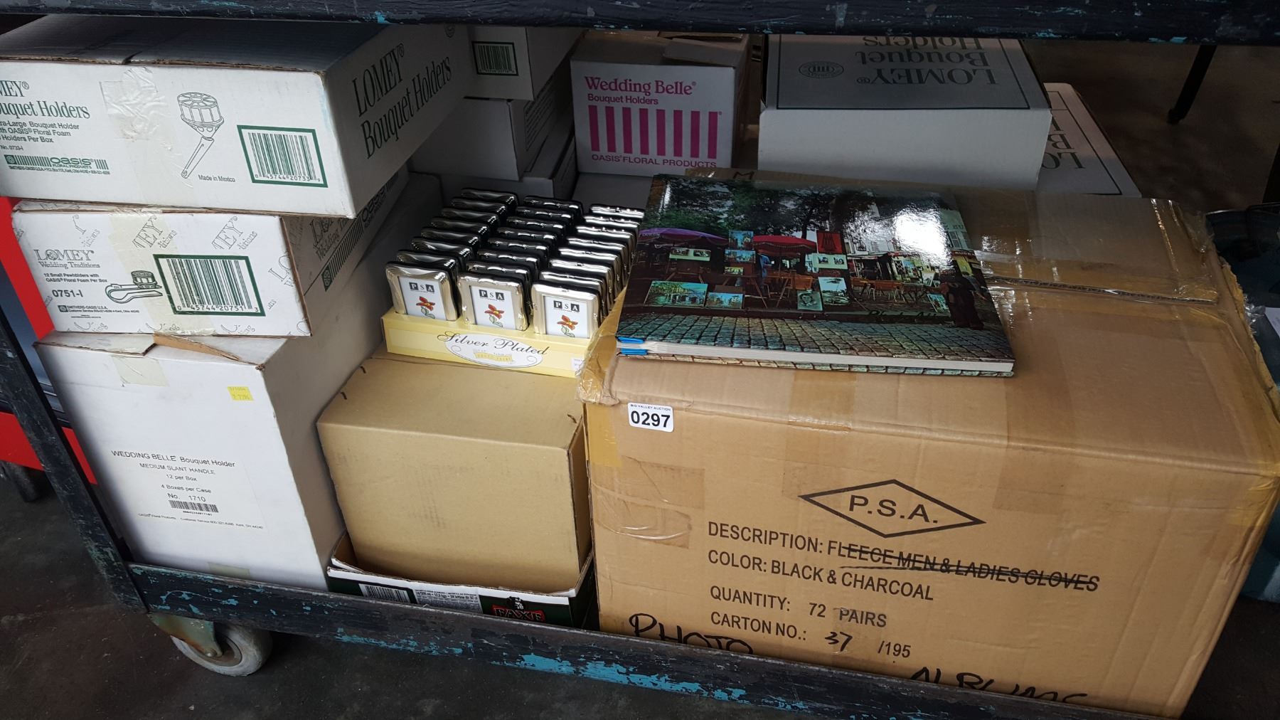 SHELF LOT OF BRIDAL BOUGQUET HOLDERS AND NEW PHOTO ALBUMS AND FRAMES