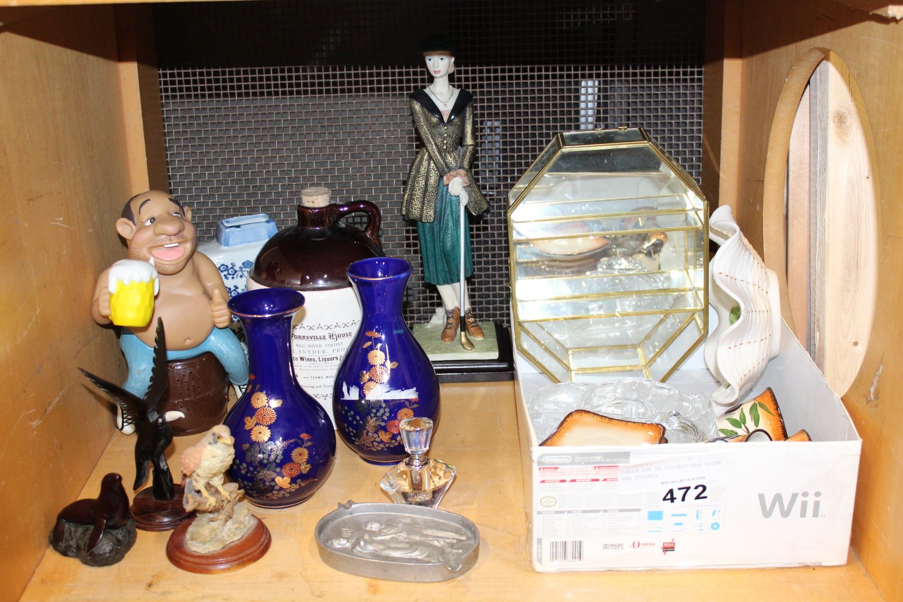SHELF LOT OF COLLECTIBLE CHINA AND FIGURES