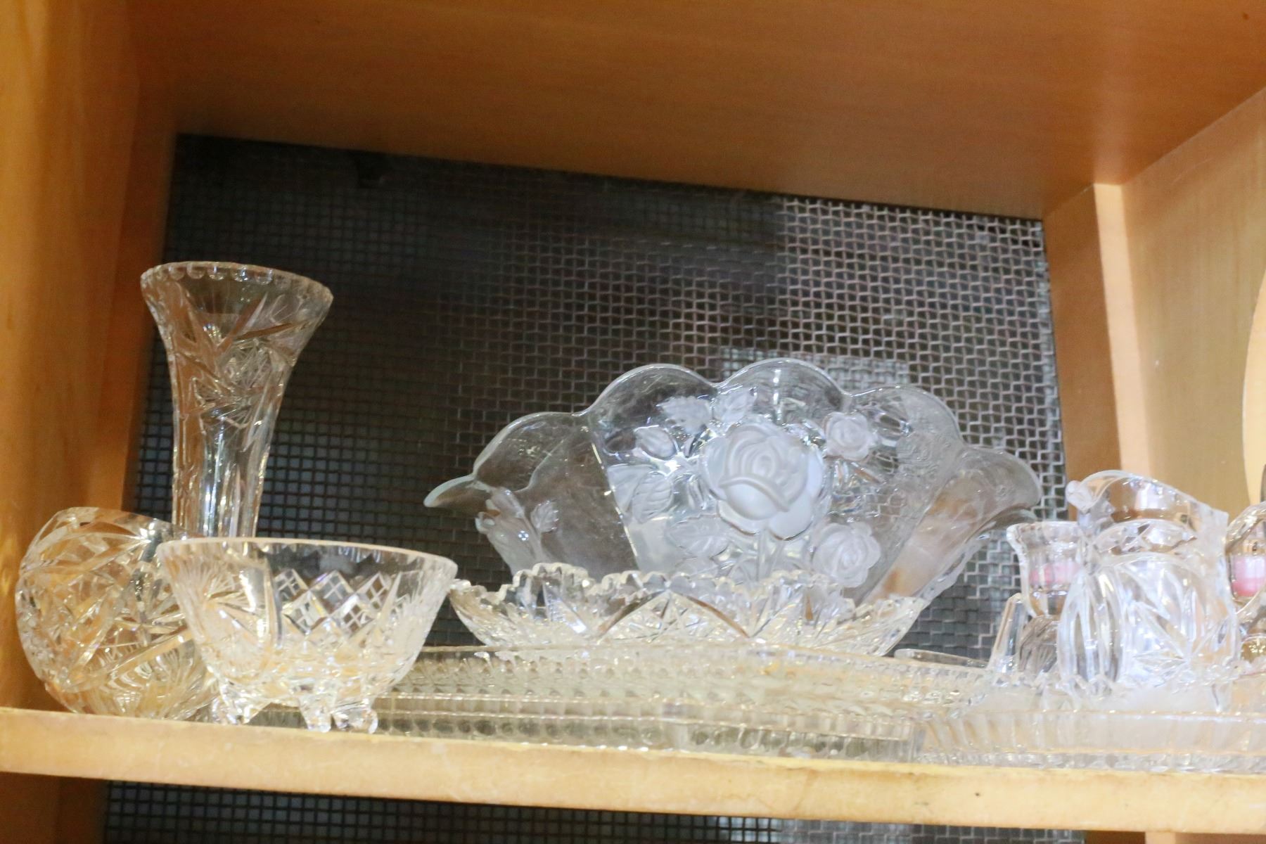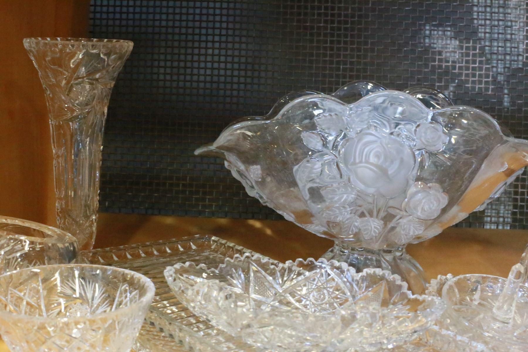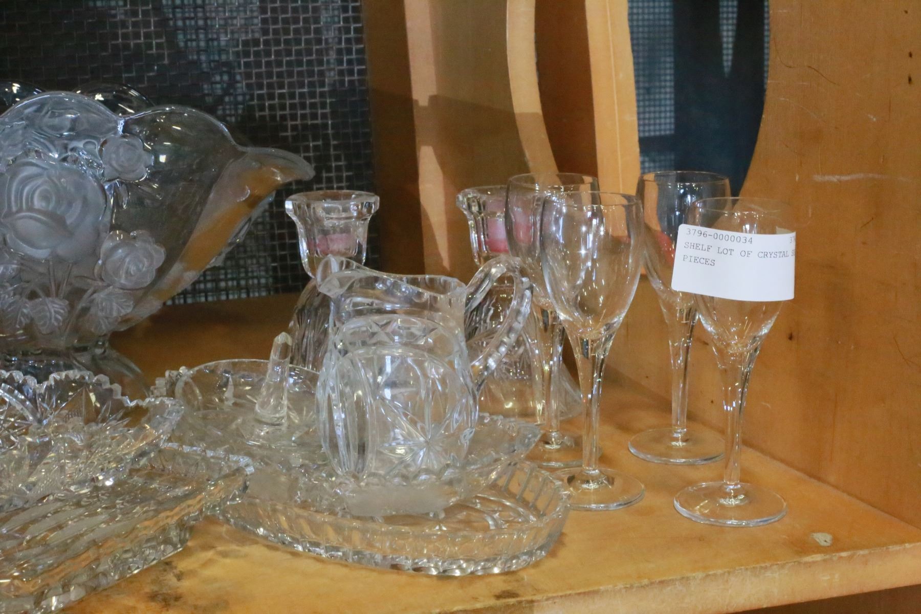 SHELF LOT OF CRYSTAL SERVING PIECES