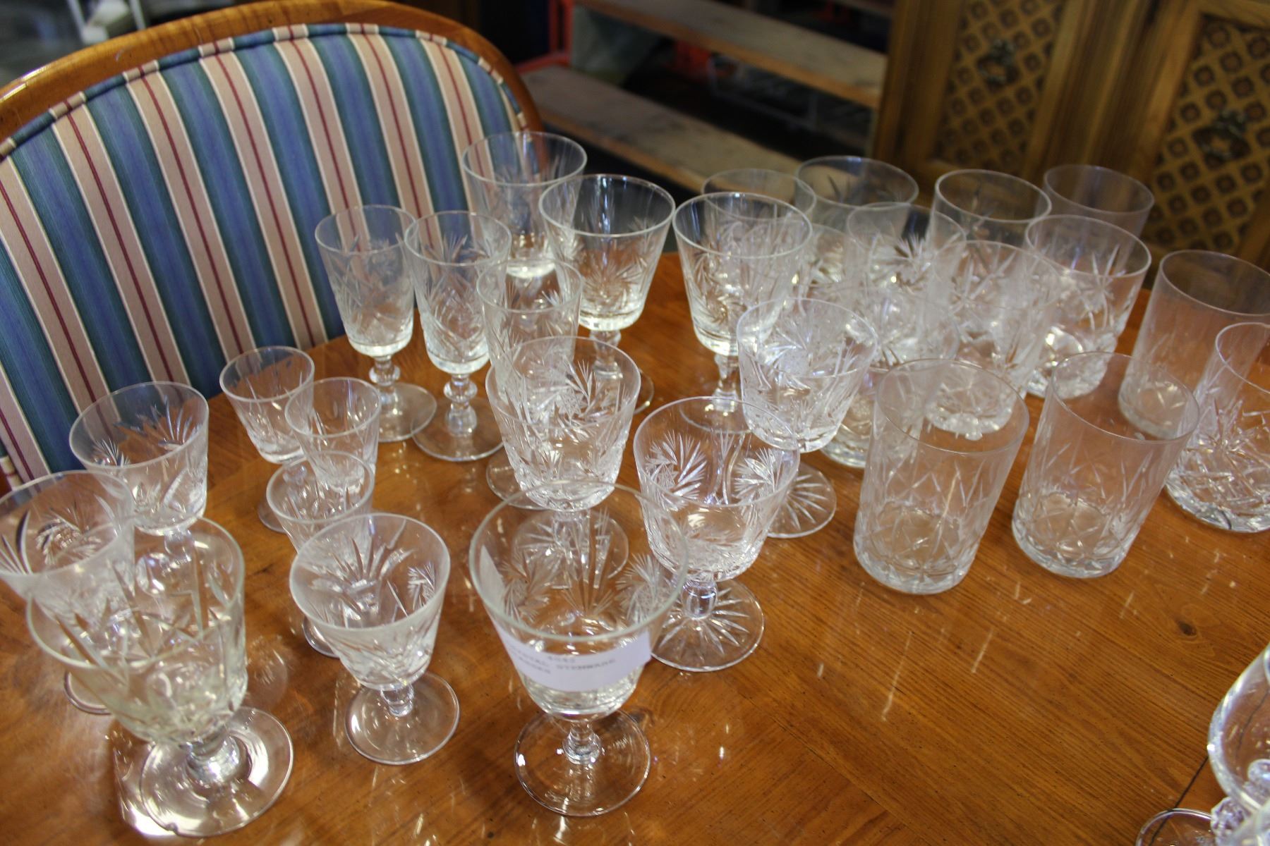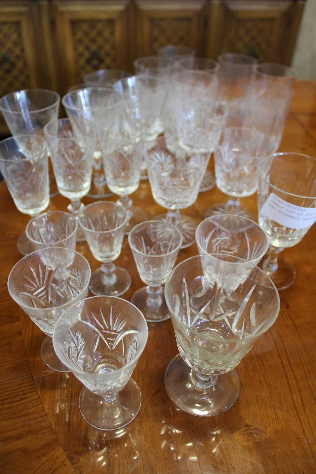 SHELF LOT OF CRYSTAL STEMWARE AND HIGHBALL GLASSES