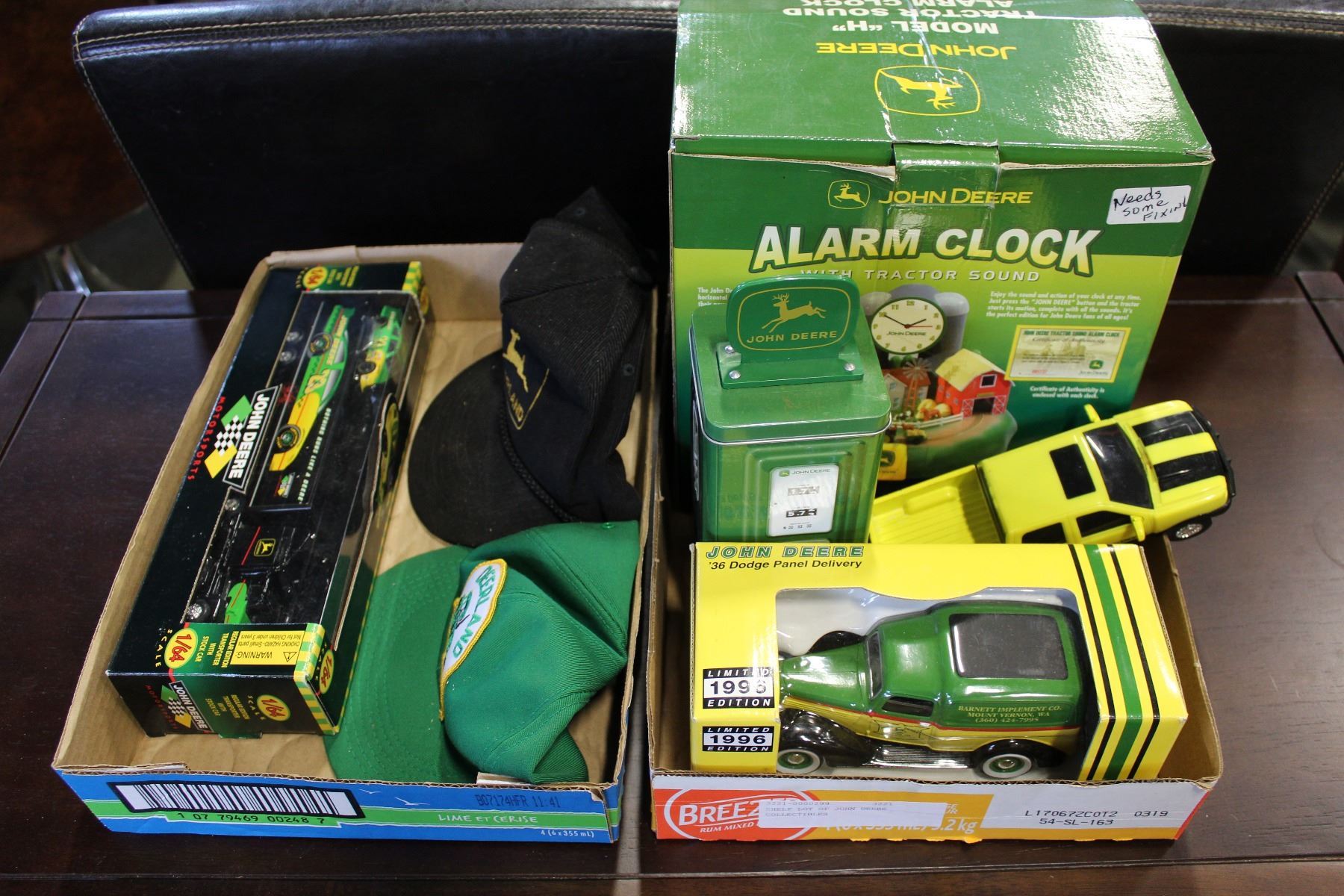 SHELF LOT OF JOHN DEERE COLLECTIBLES