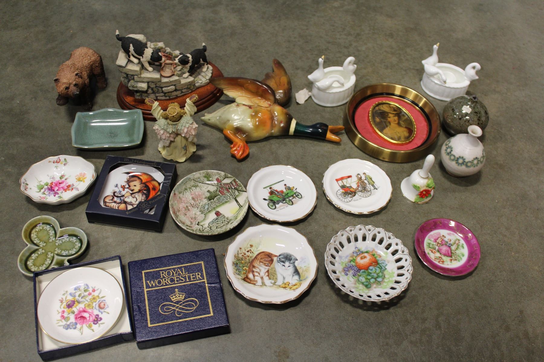 SHELF LOT OF VARIOUS COLLECTIBLE CHINA AND POTTERY AND FIGURES