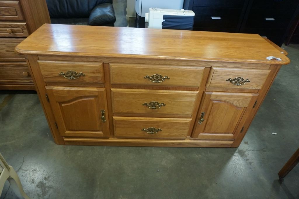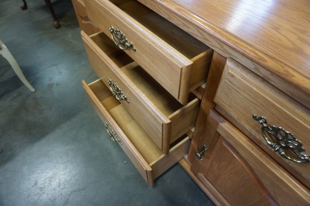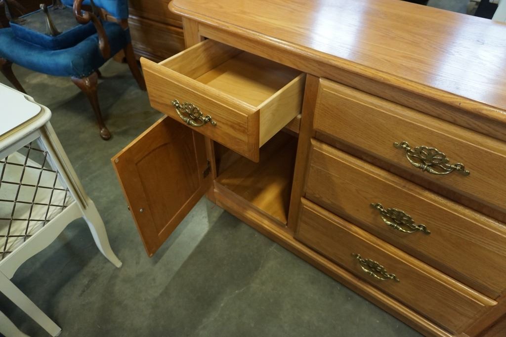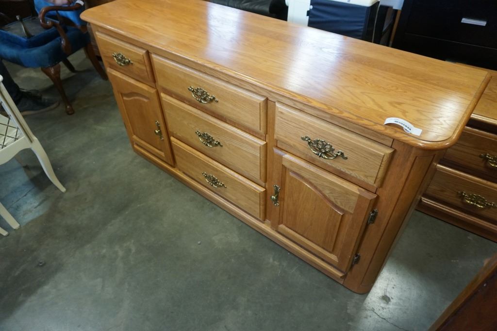SHERMAG OAK 5 DRAWER DRESSER - 63 INCHES WIDE X 18 DEEP X 31.5 TALL