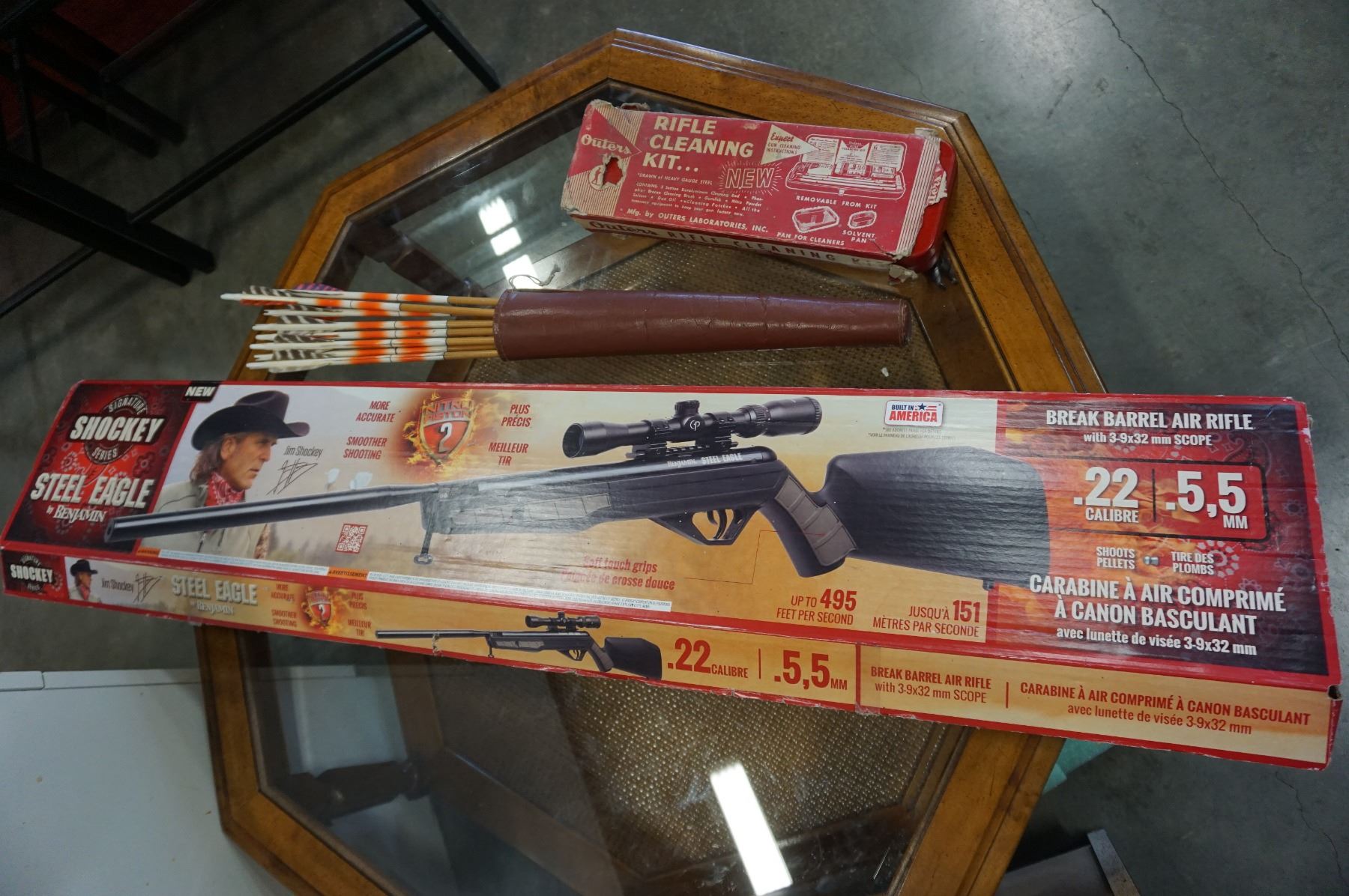 SHOCKEY STEEL EAGLE BREAK BARREL AIR RIFLE W/ RIFLE CLEANING KIT AND QUIVER ARROWS