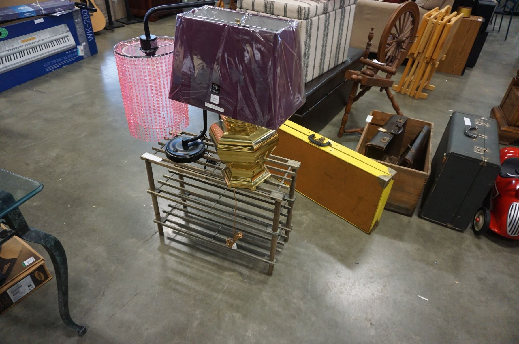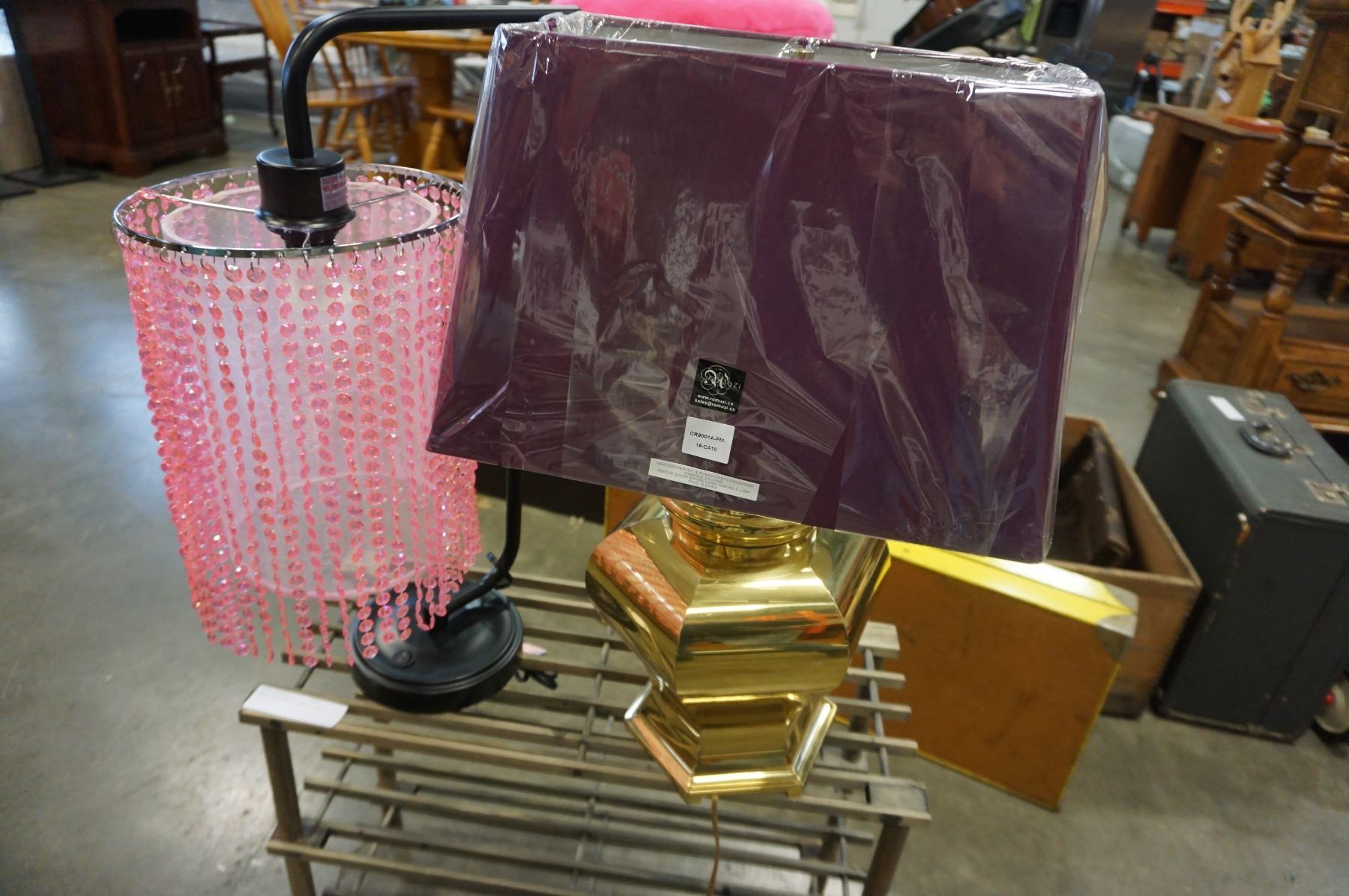 SHOE RACK AND 2 TABLE LAMPS