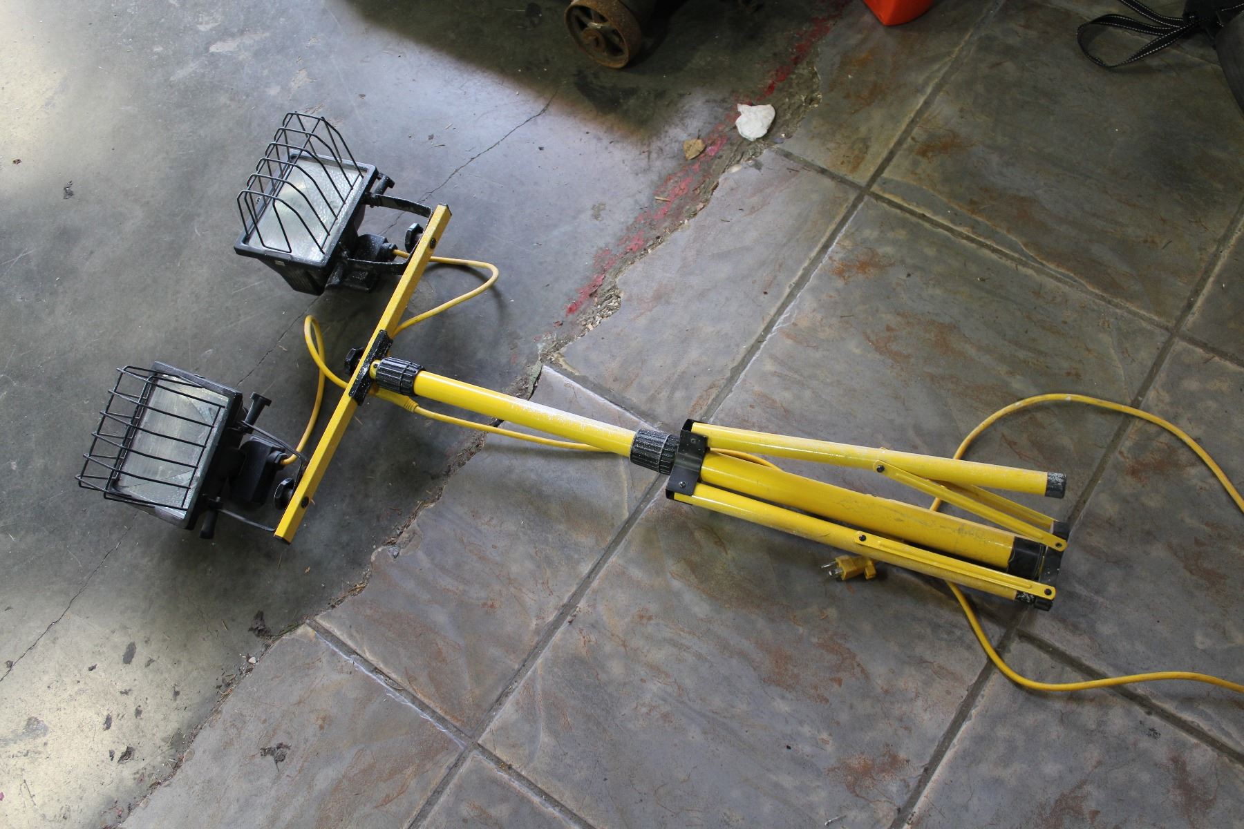 SHOP LIGHT ON STAND AND EXTENTION CORD REEL