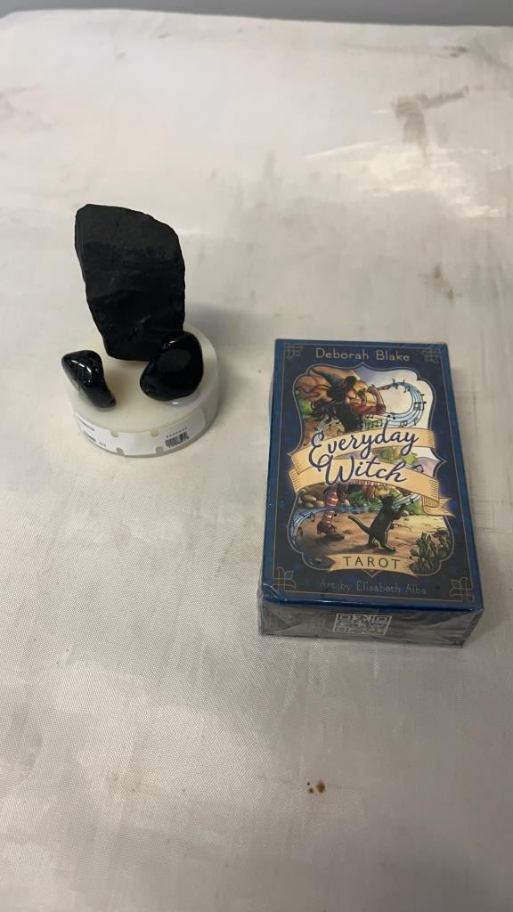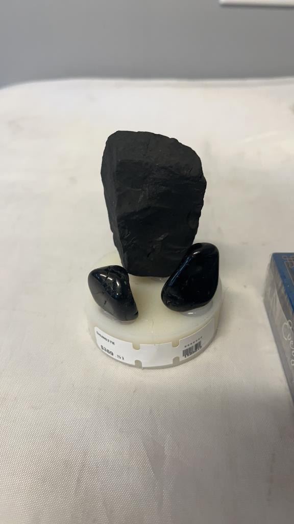 SHUNGITE DISPLAY WITH TAROT CARDS