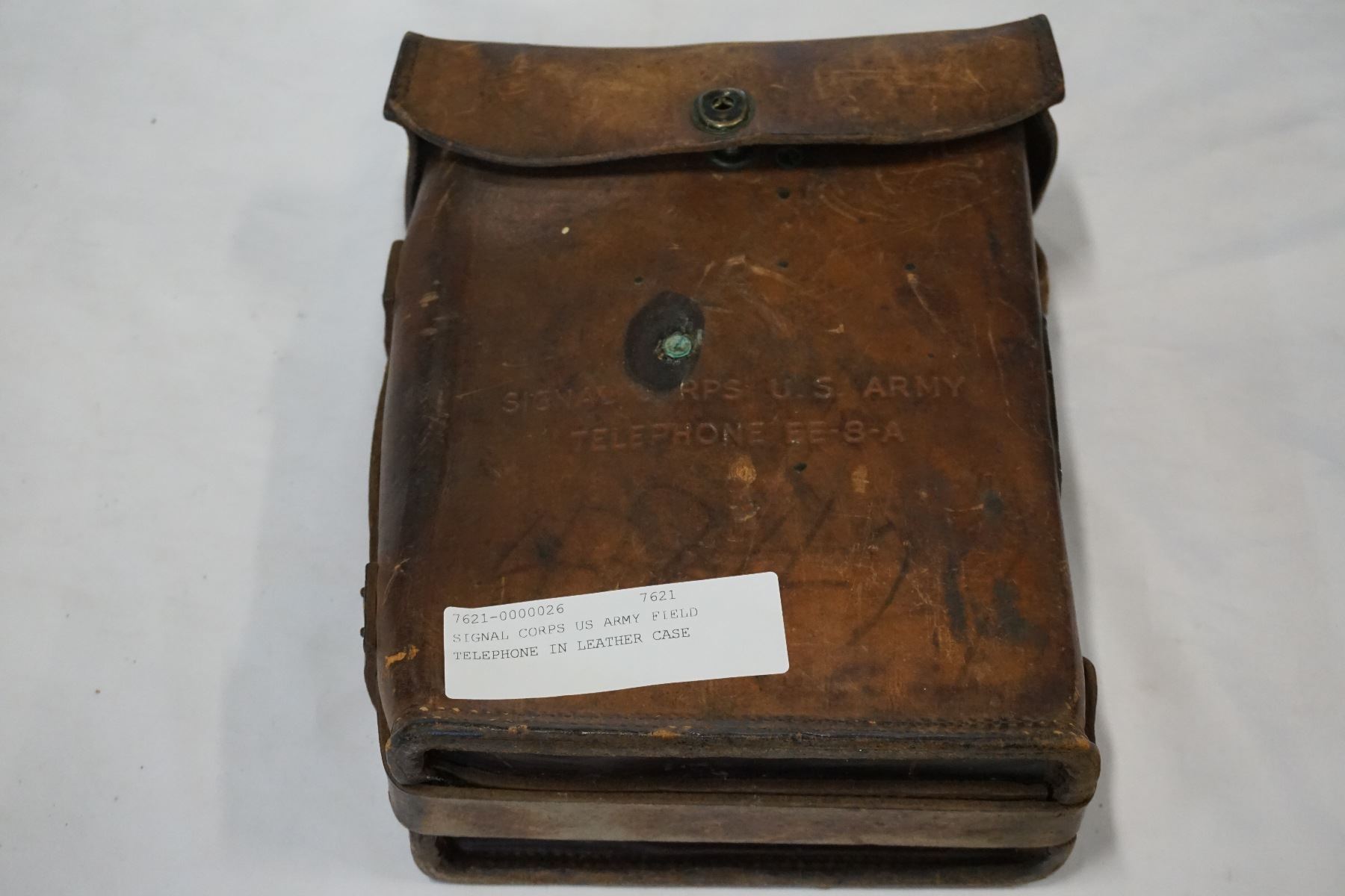 SIGNAL CORPS US ARMY FIELD TELEPHONE IN LEATHER CASE