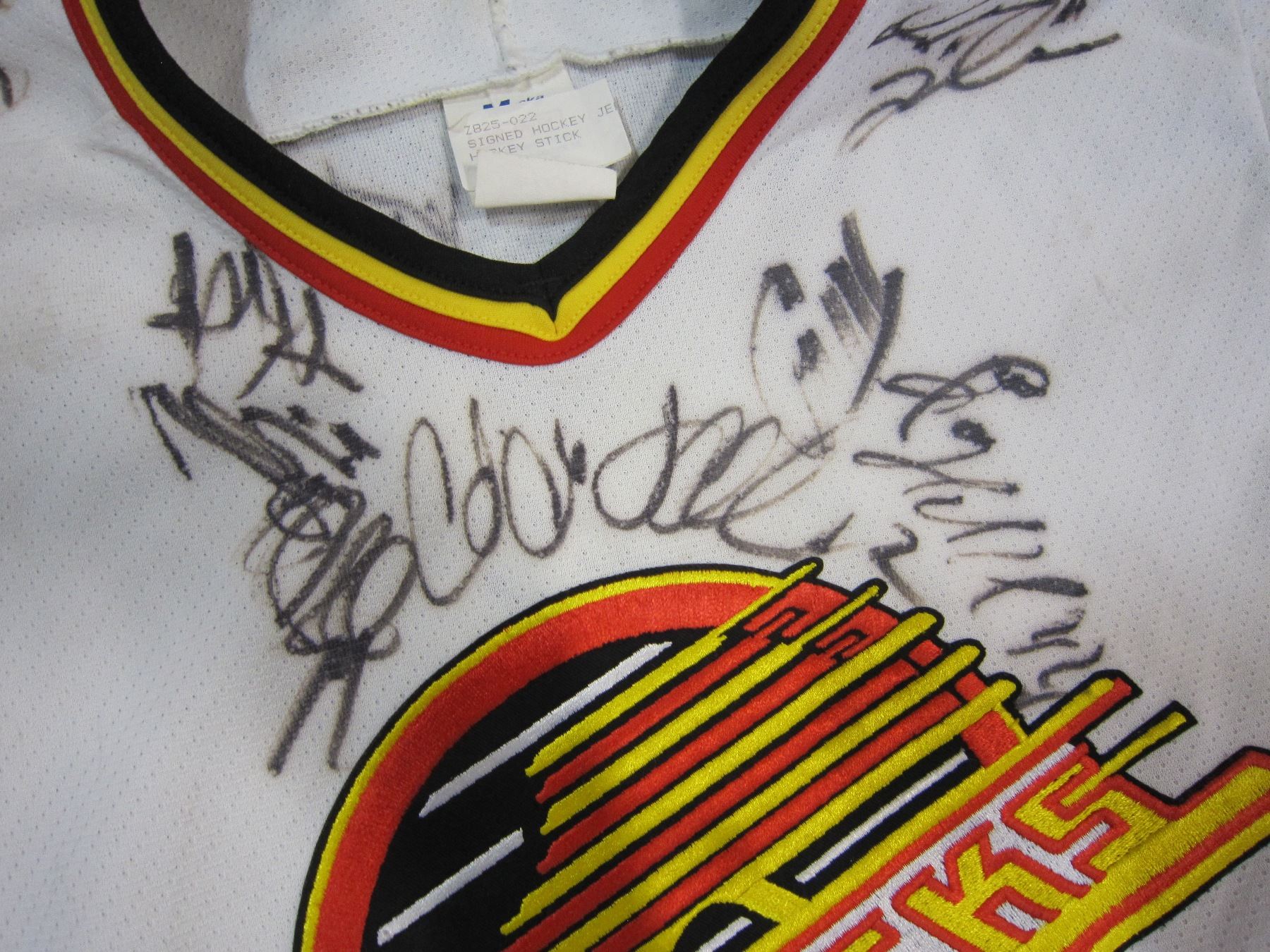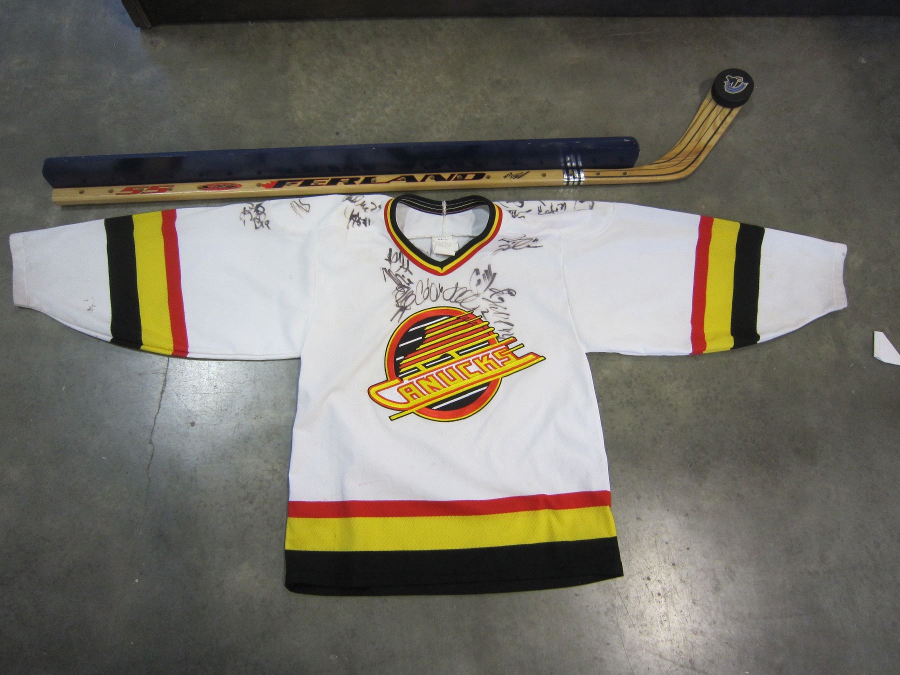 SIGNED CANUCKS YOUTH JERSEY AND WALL SHELF