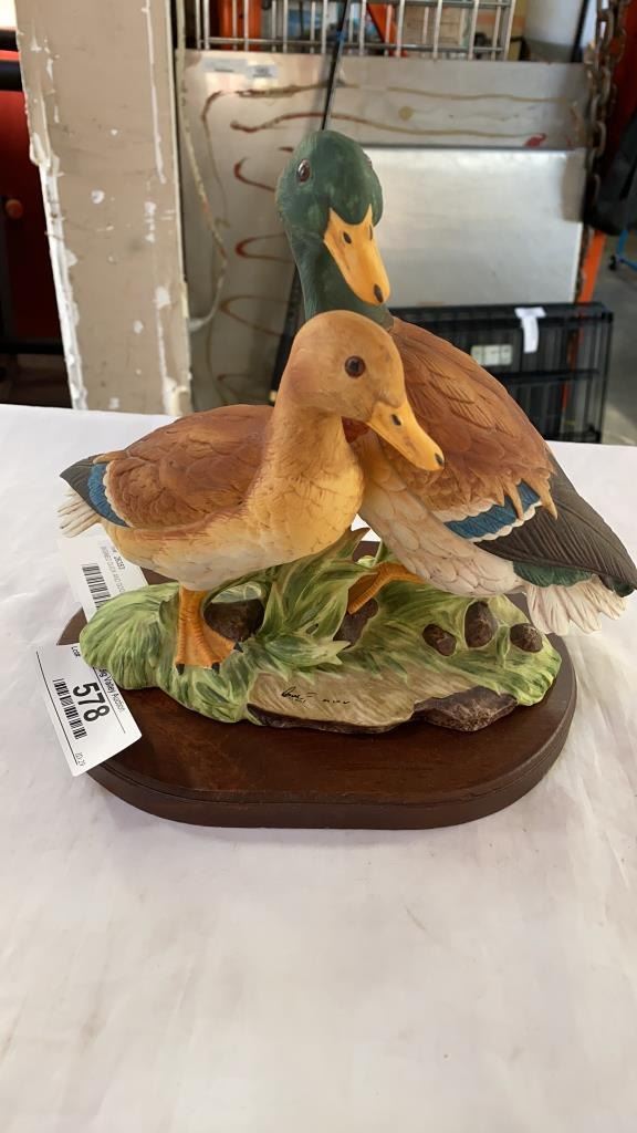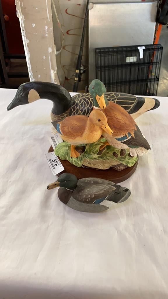 SIGNED DUCK AND GOOSE FIGURES AND DUCK FIGURE