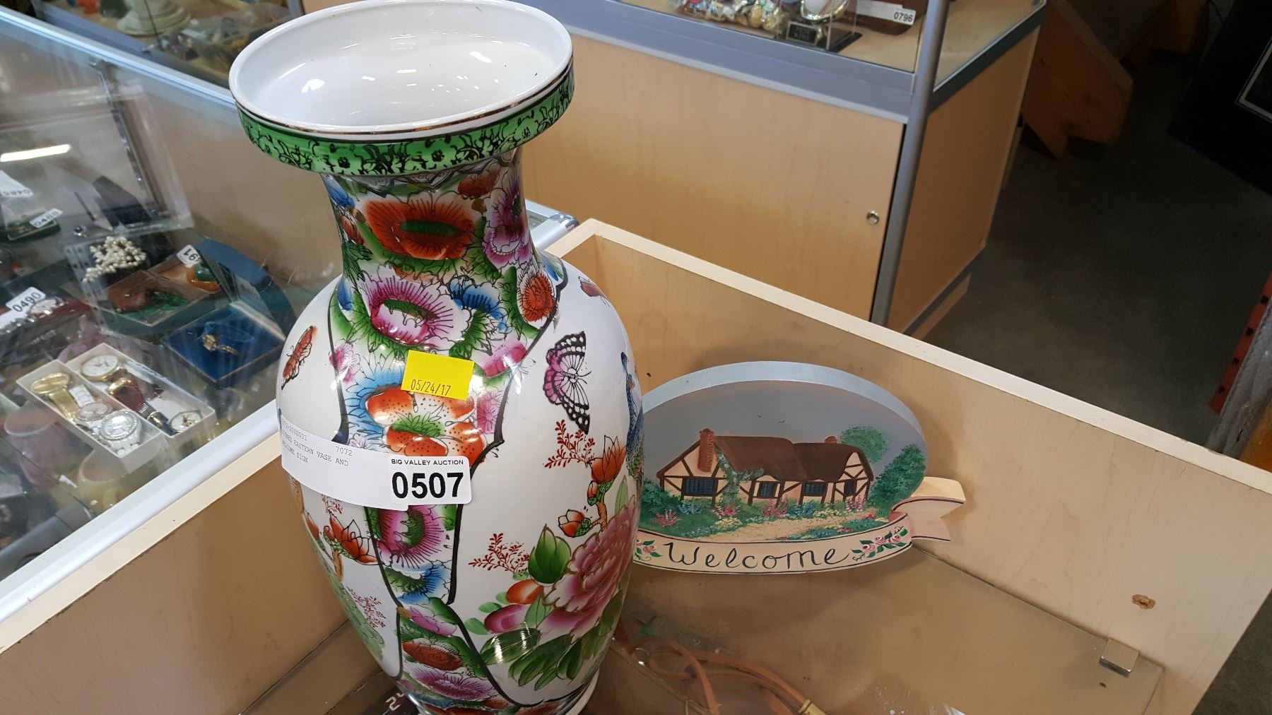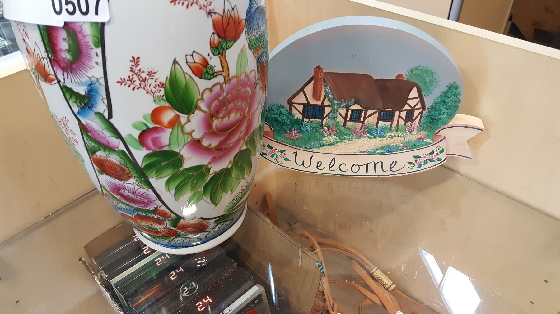 SIGNED EASTERN VASE AND WELCOME SIGN