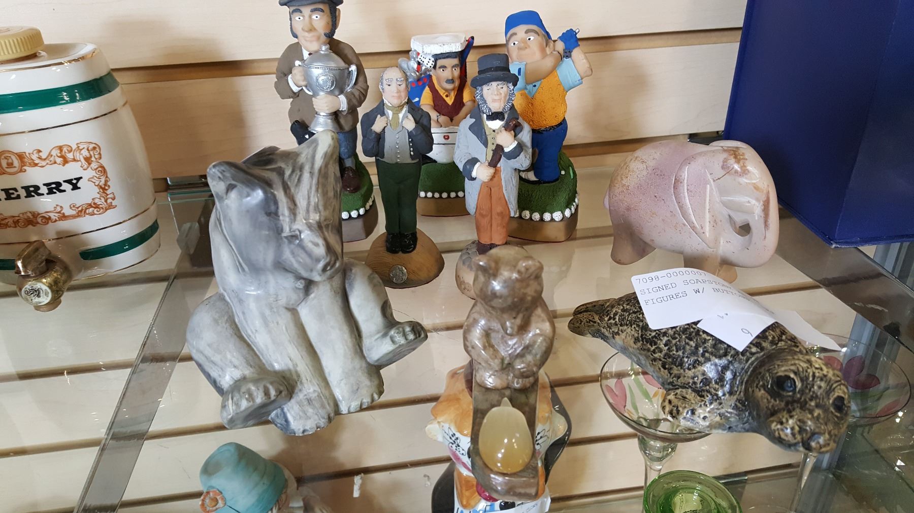 SIGNED SOAPSTONE AND OTHER FIGURES W/ BUTTONS