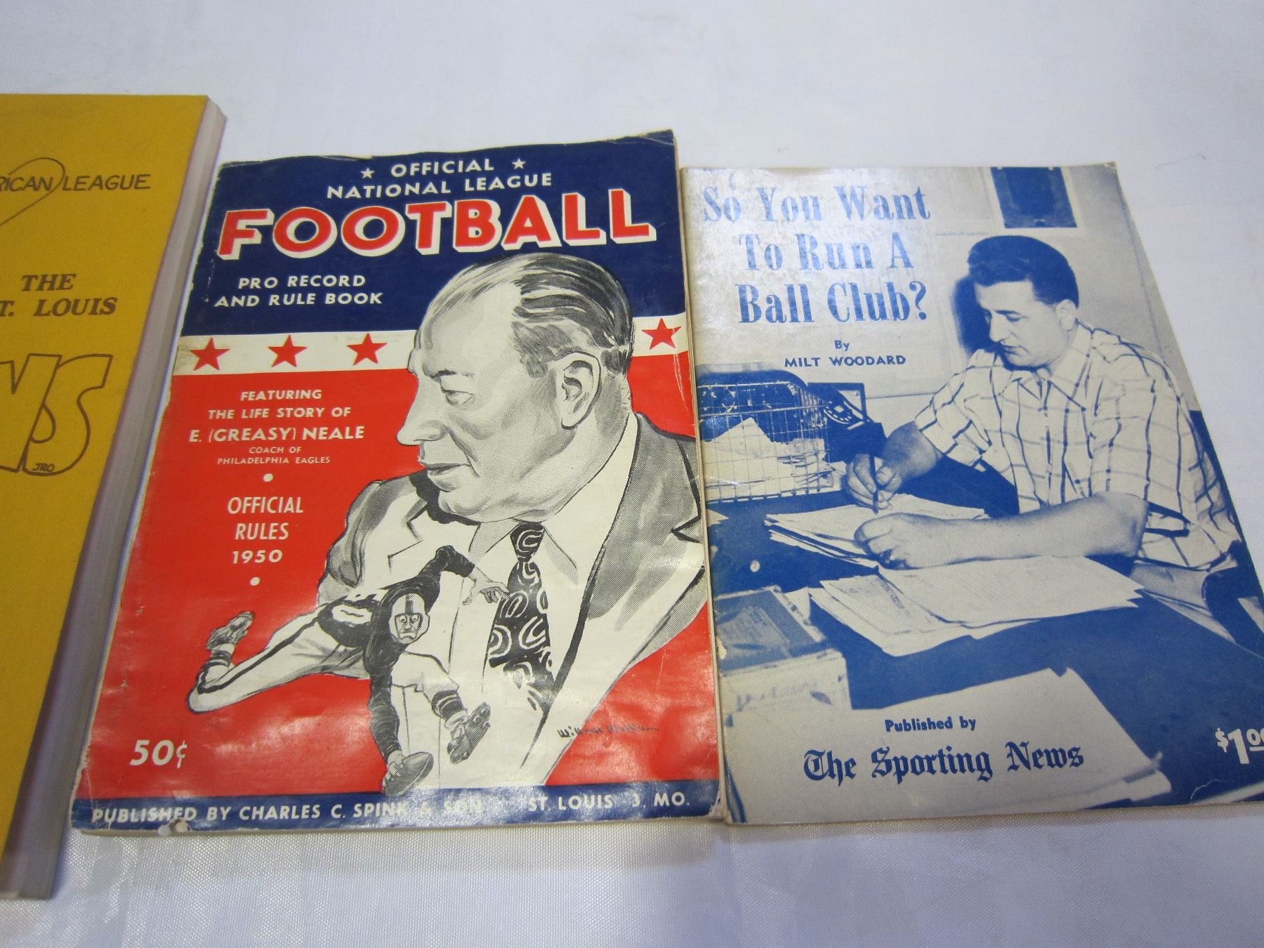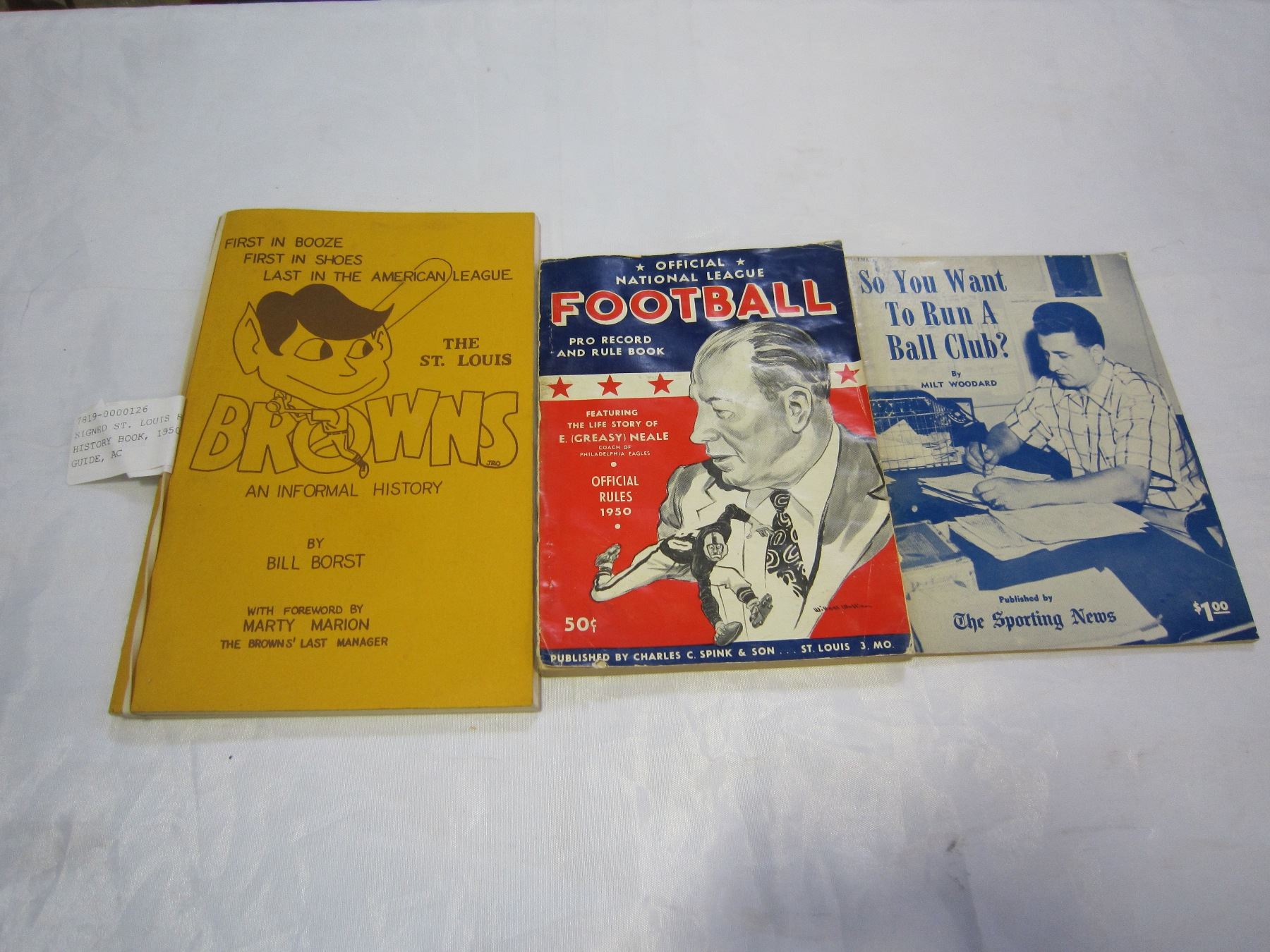 SIGNED ST. LOUIS BROWNS HISTORY BOOK, 1950 FOOTBALL GUIDE, AC