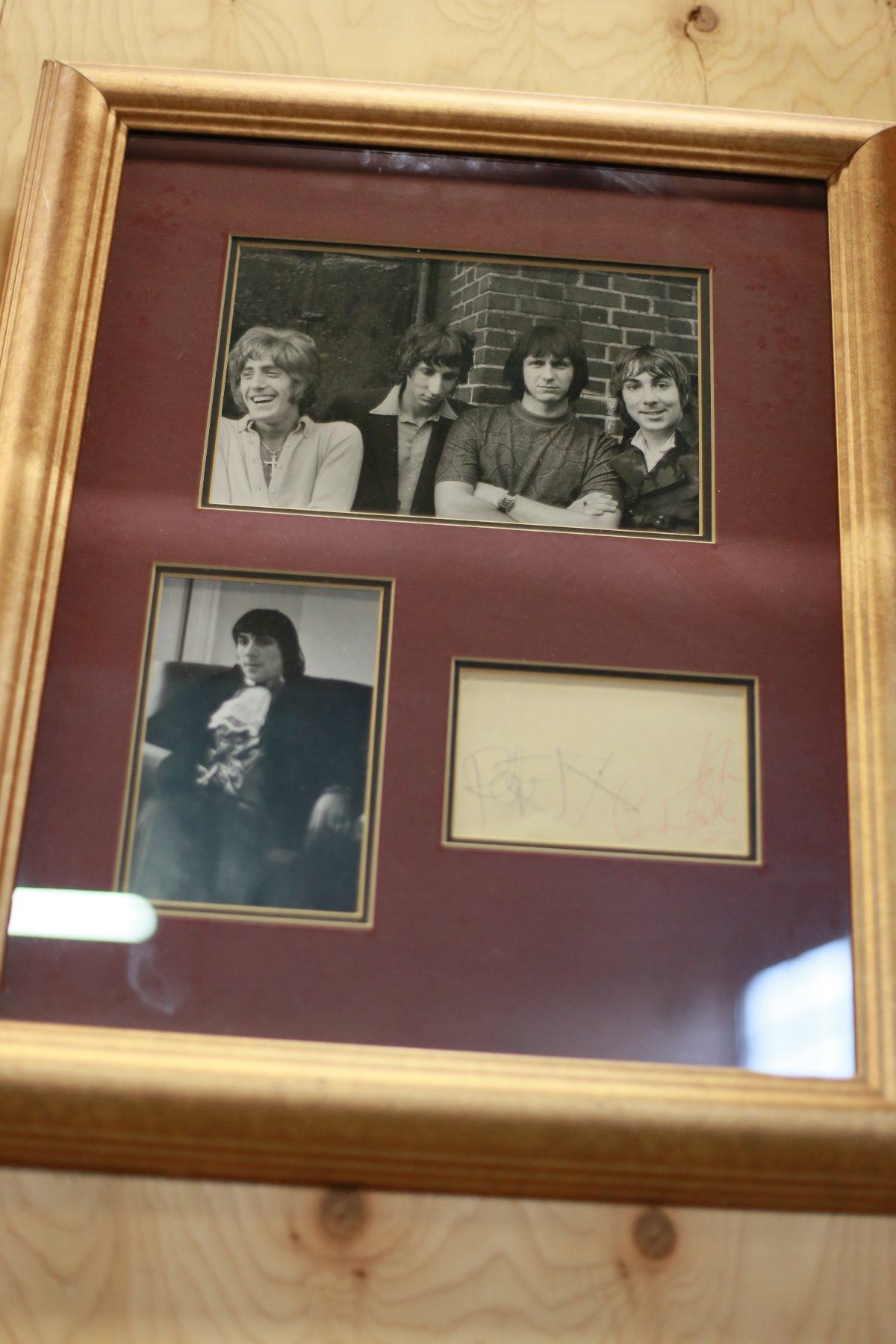 SIGNED THE WHO RARE FRAMED PHOTO SIGNED BY PETE TOWNSEND, ROGER DALTRY, AND JOHN ENTHWISTLE, INCLUDING RARE PHOTO OF KEITH MOON. VALUED AT OVER $1600 CAD. EXTREMELY RARE