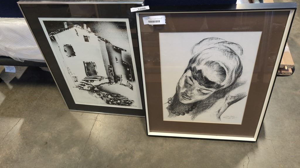 SIGNED TOTUBALINT "ILLANES" BLACK AND WHITE WITH LOUIS DOBRY CHARCOAL SKETCH ART