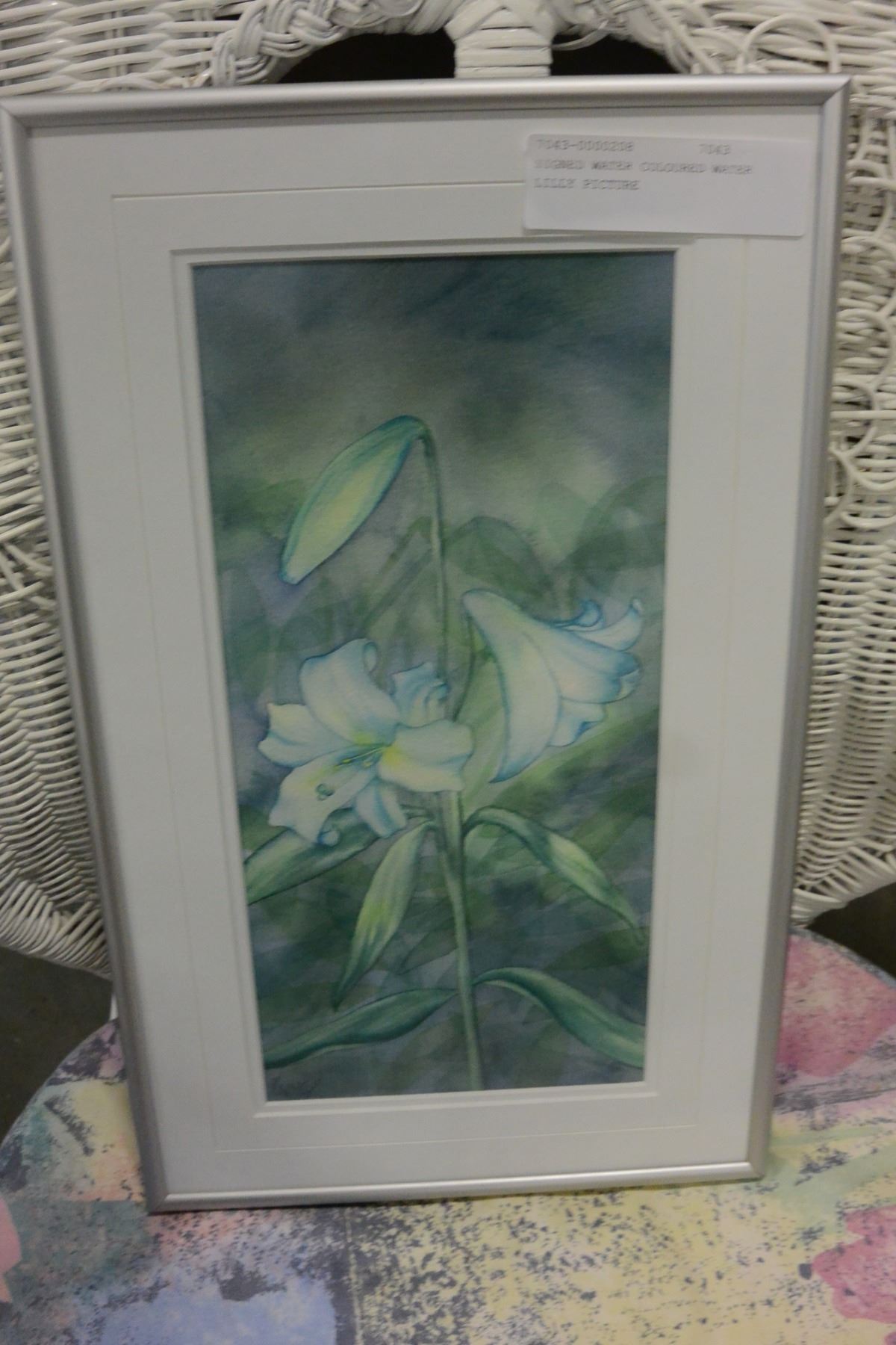 SIGNED WATER COLOURED WATER LILLY PICTURE