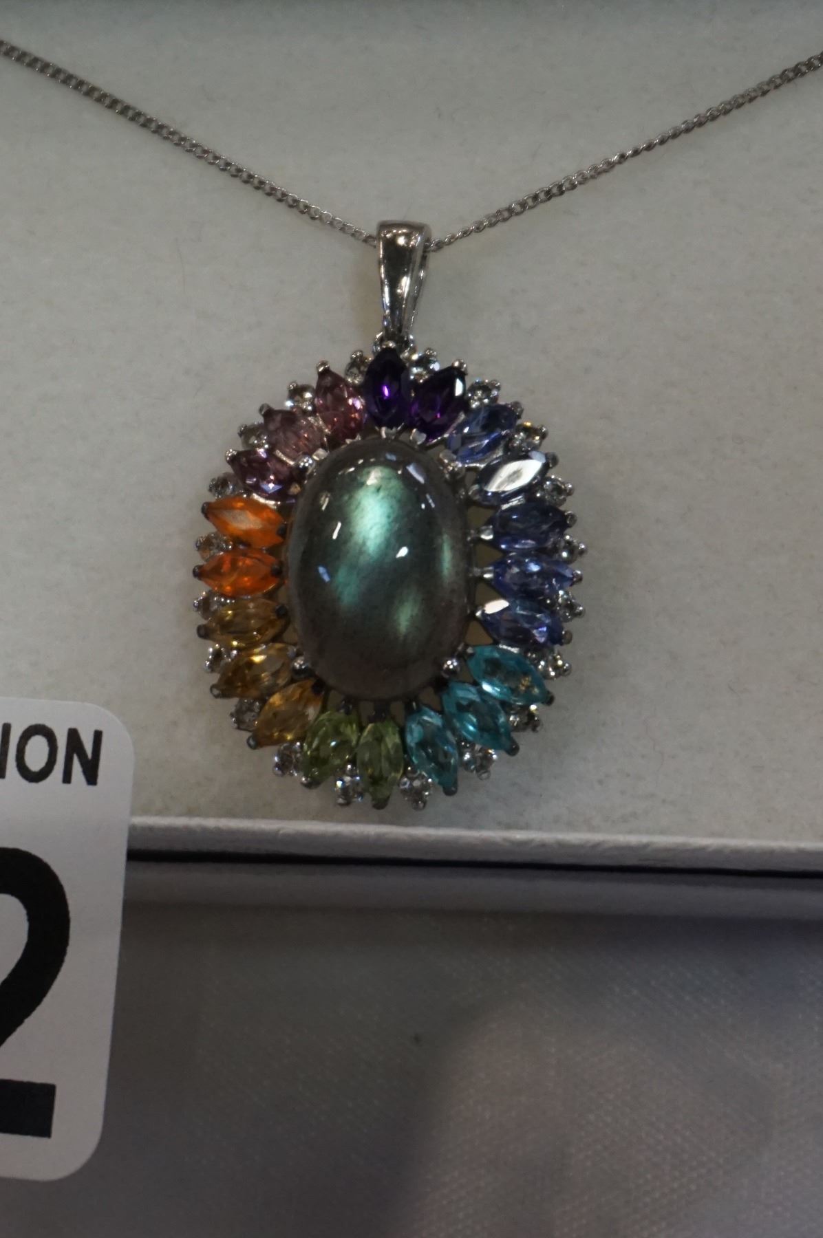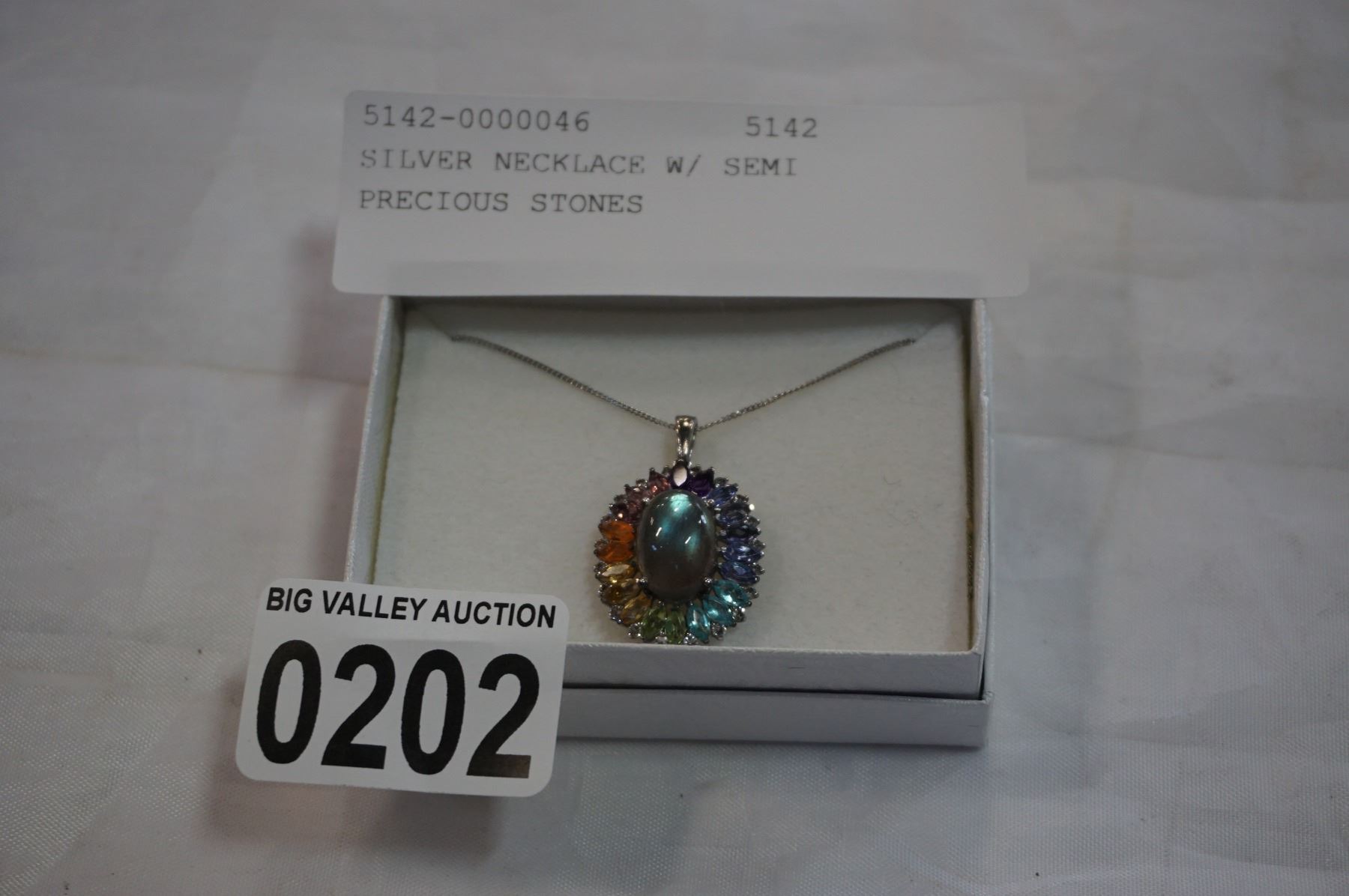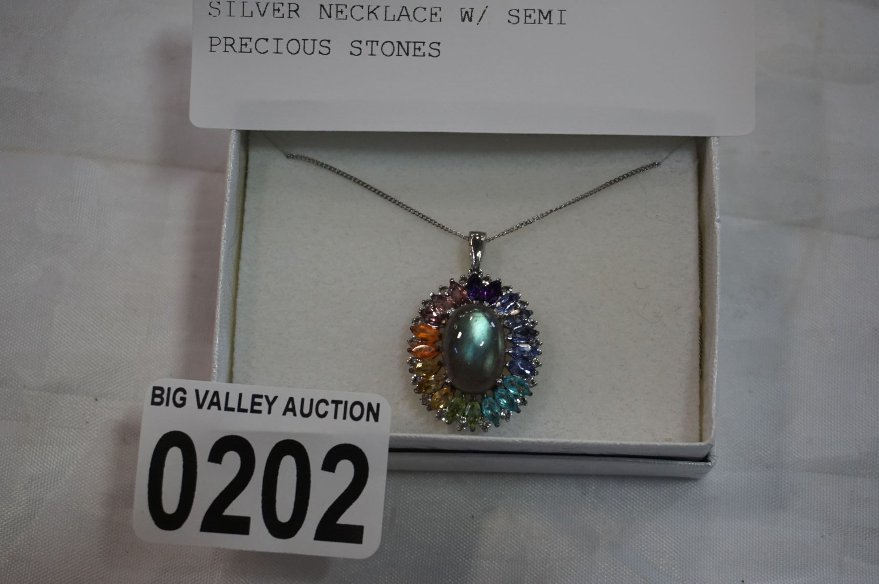SILVER NECKLACE W/ SEMI PRECIOUS STONES