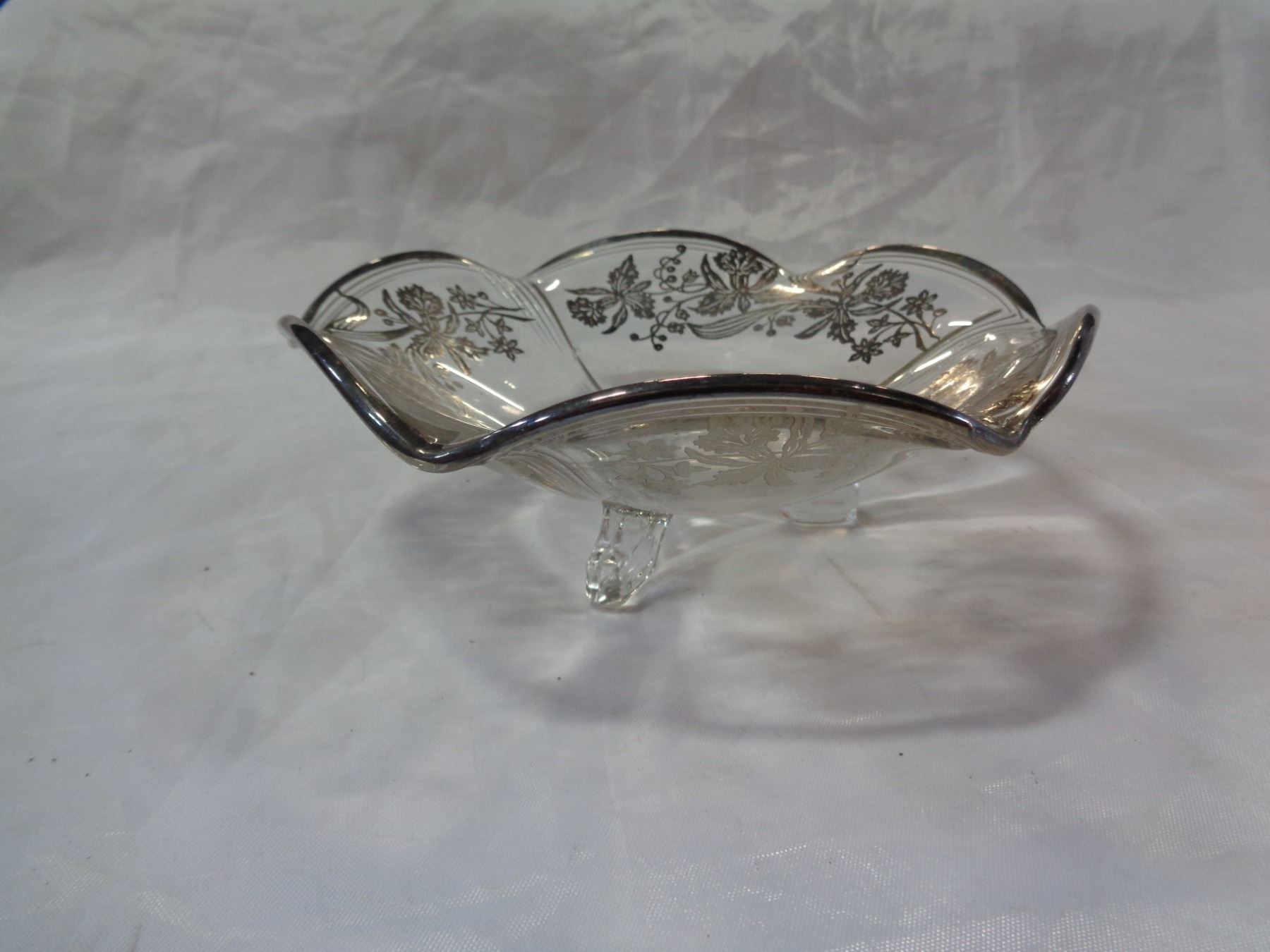 SILVER OVERLAY DISH AND
