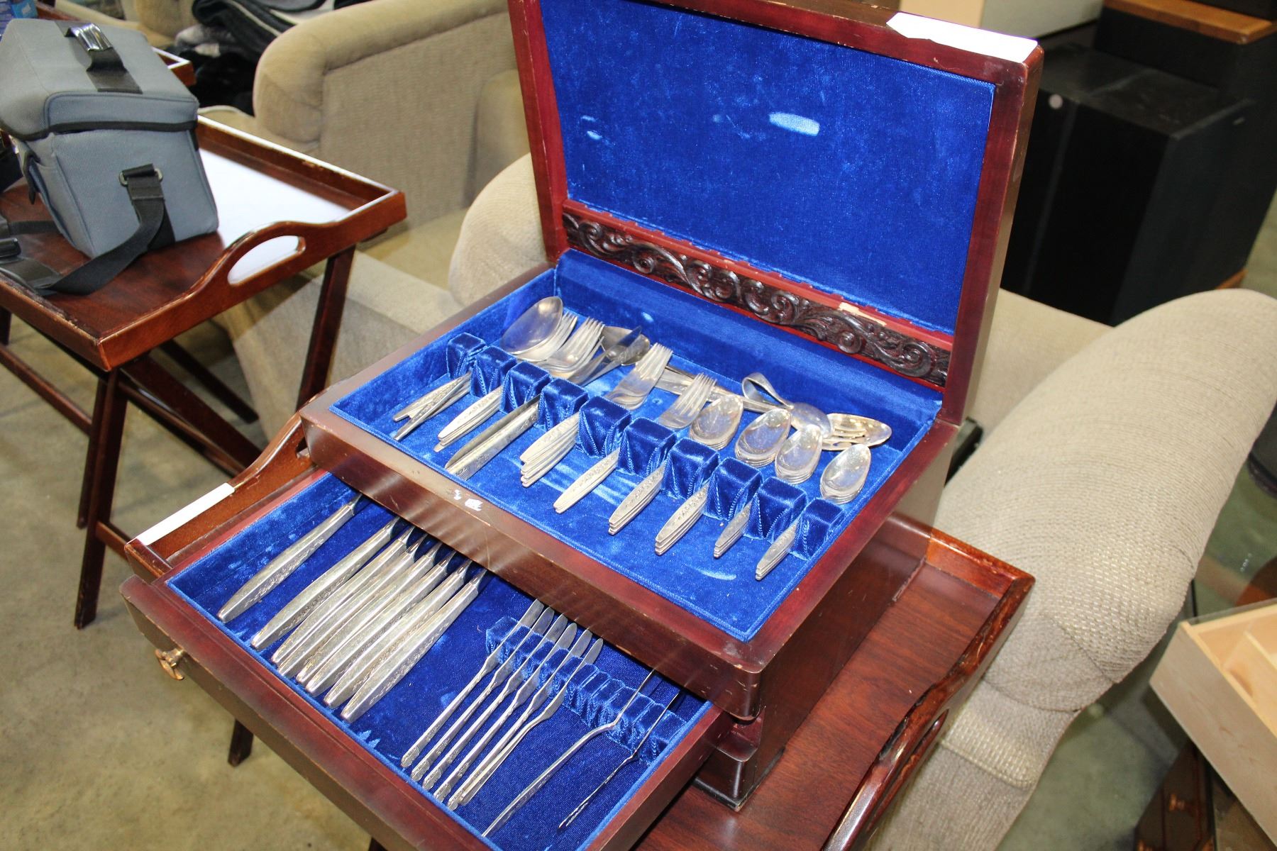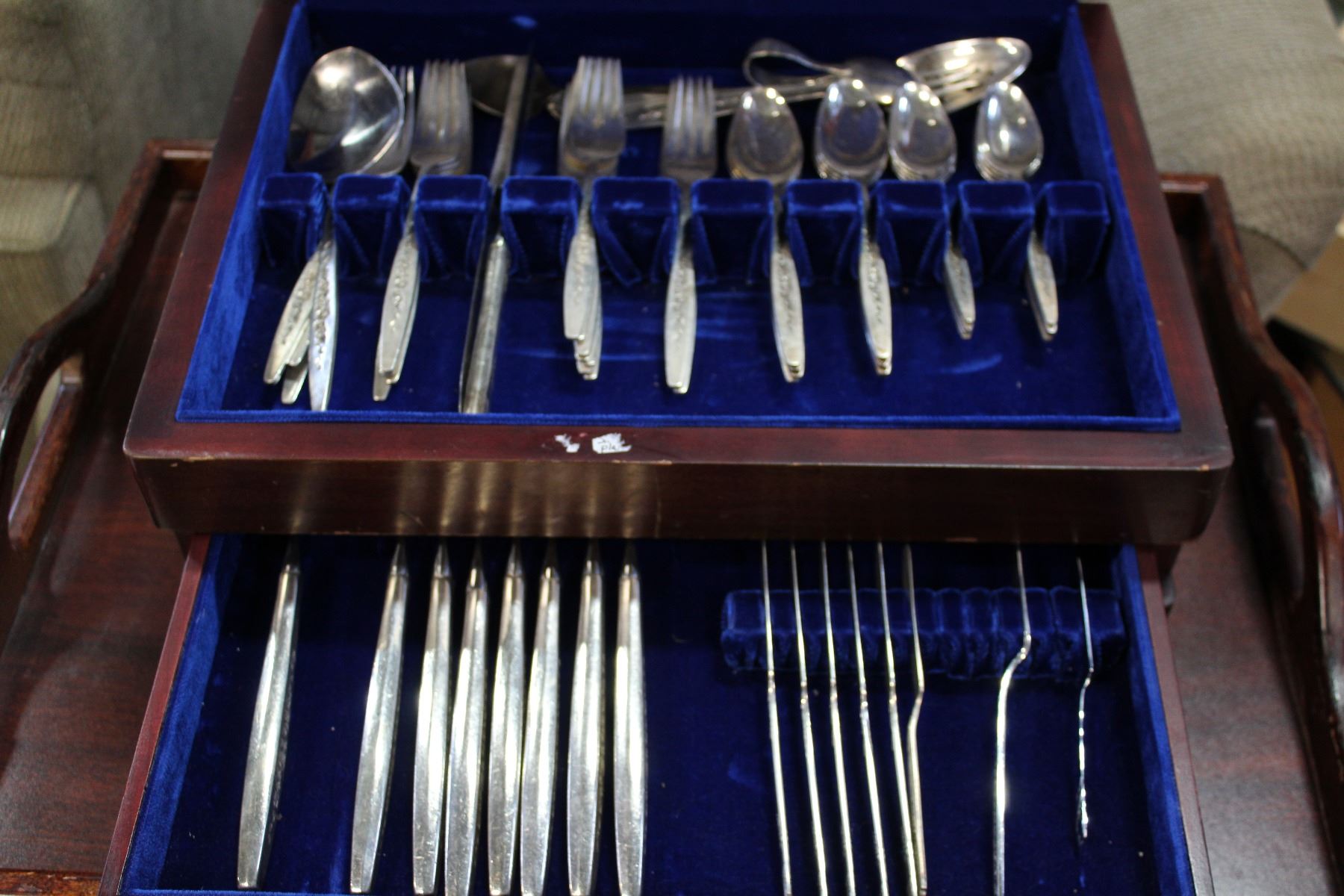 SILVER PLATE CUTLERY IN CANTEEN
