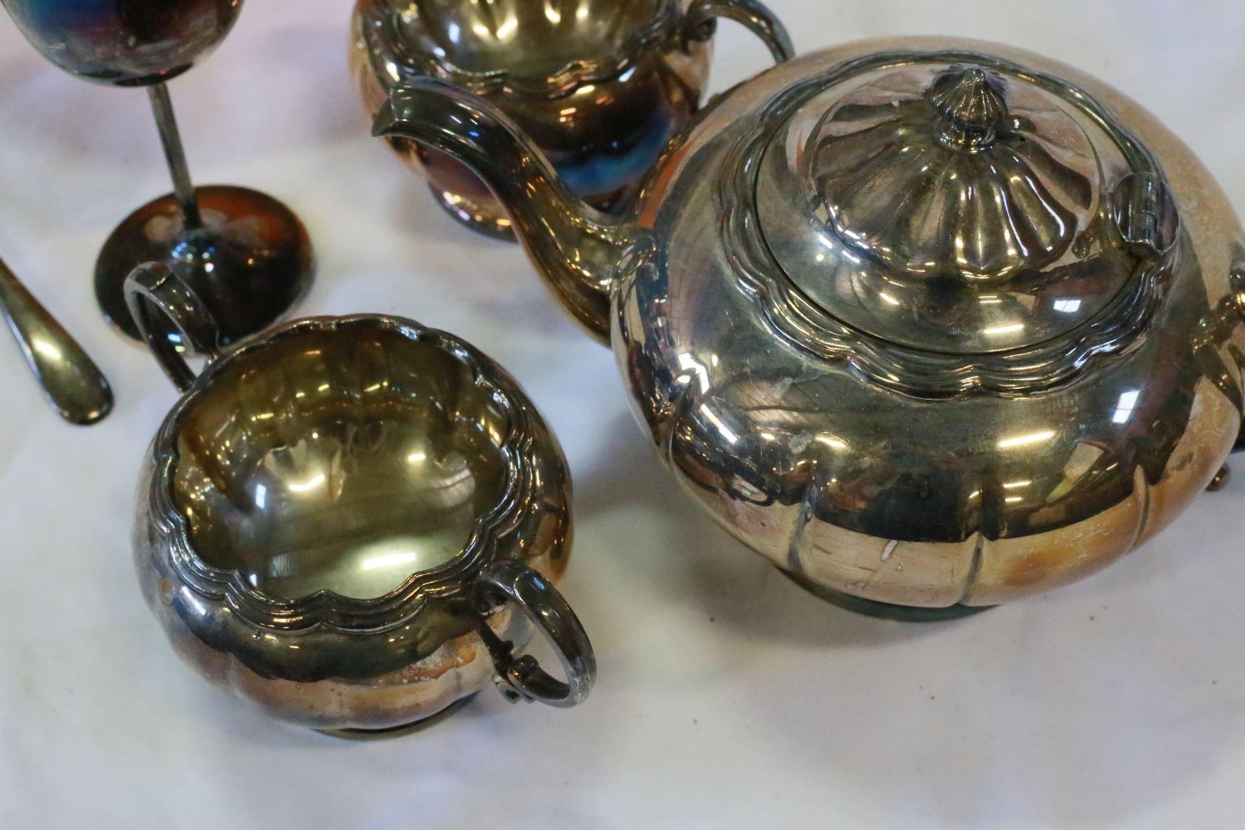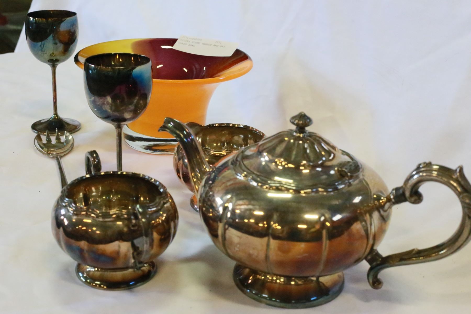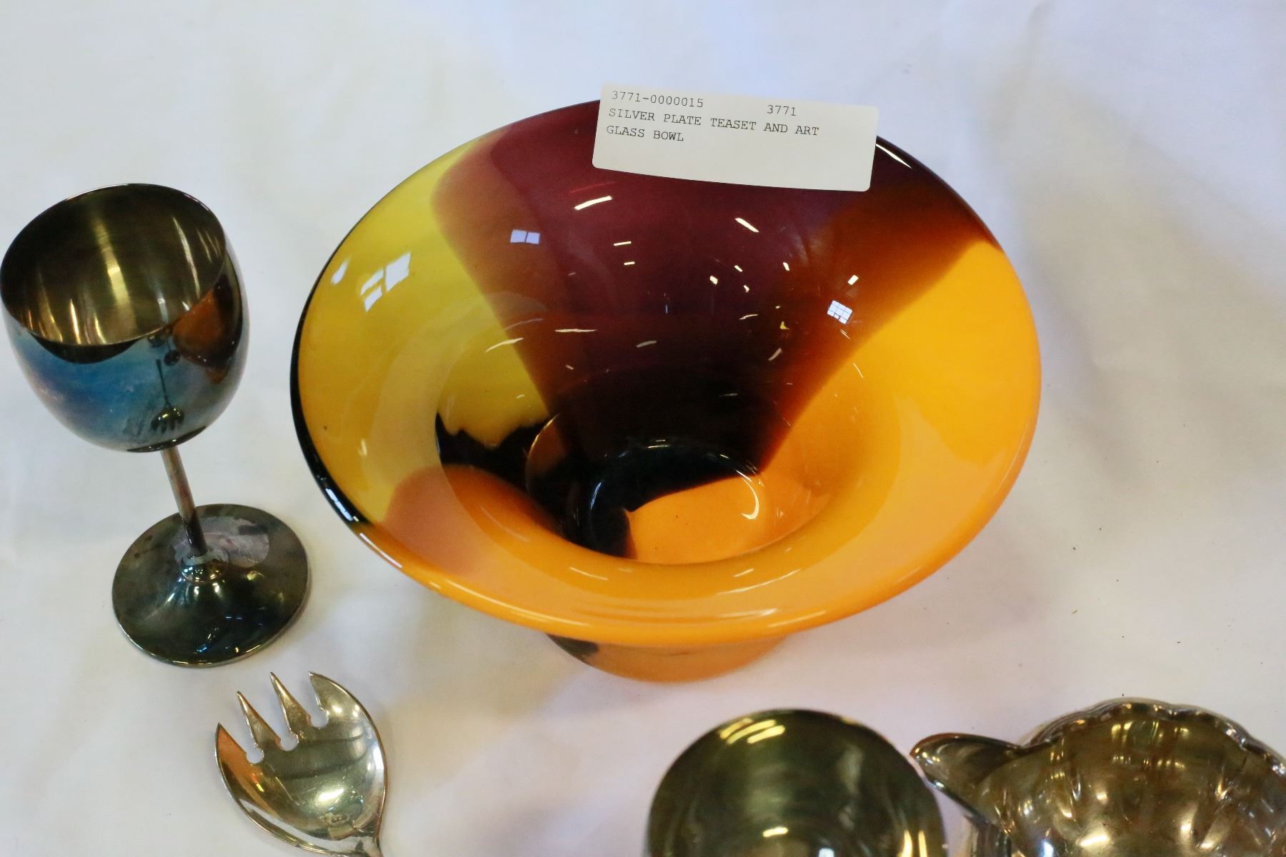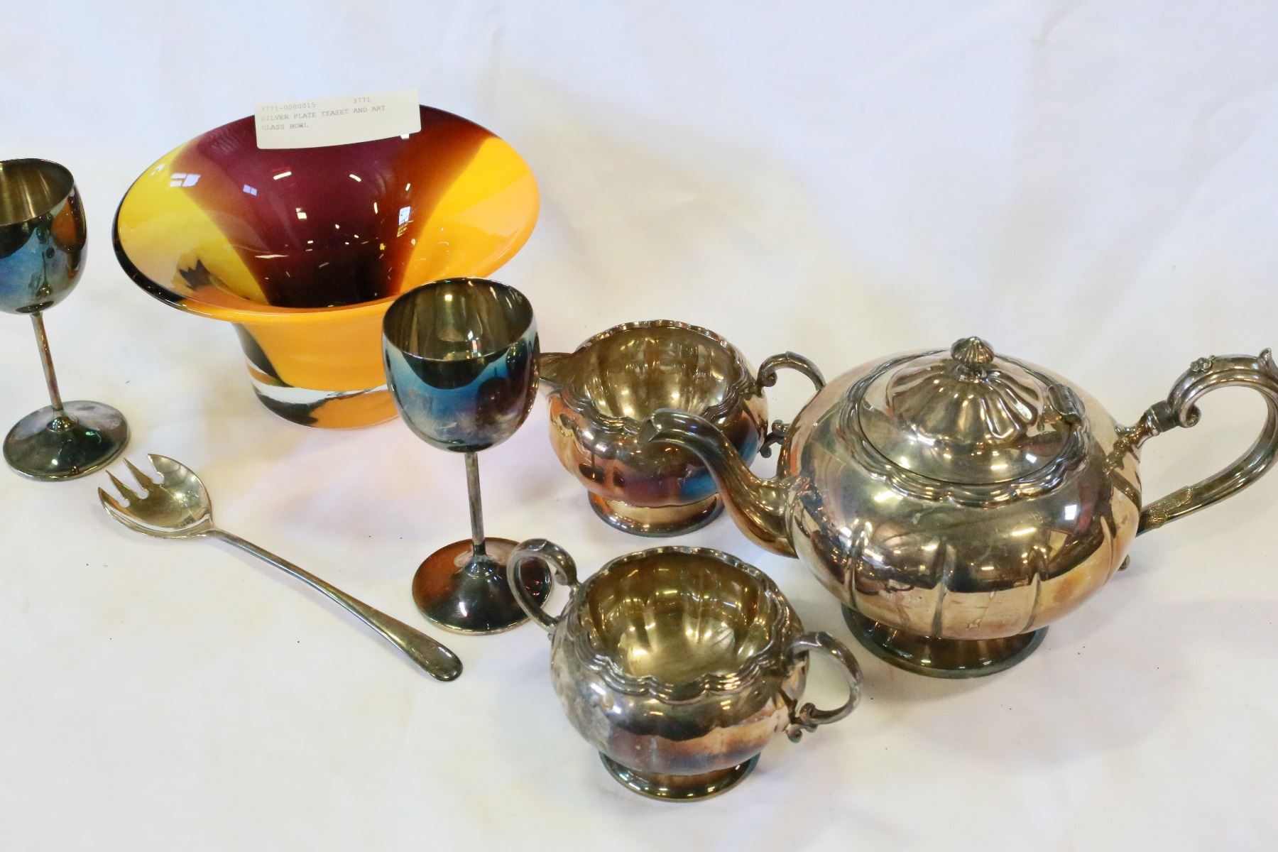 SILVER PLATE TEASET AND ART GLASS BOWL