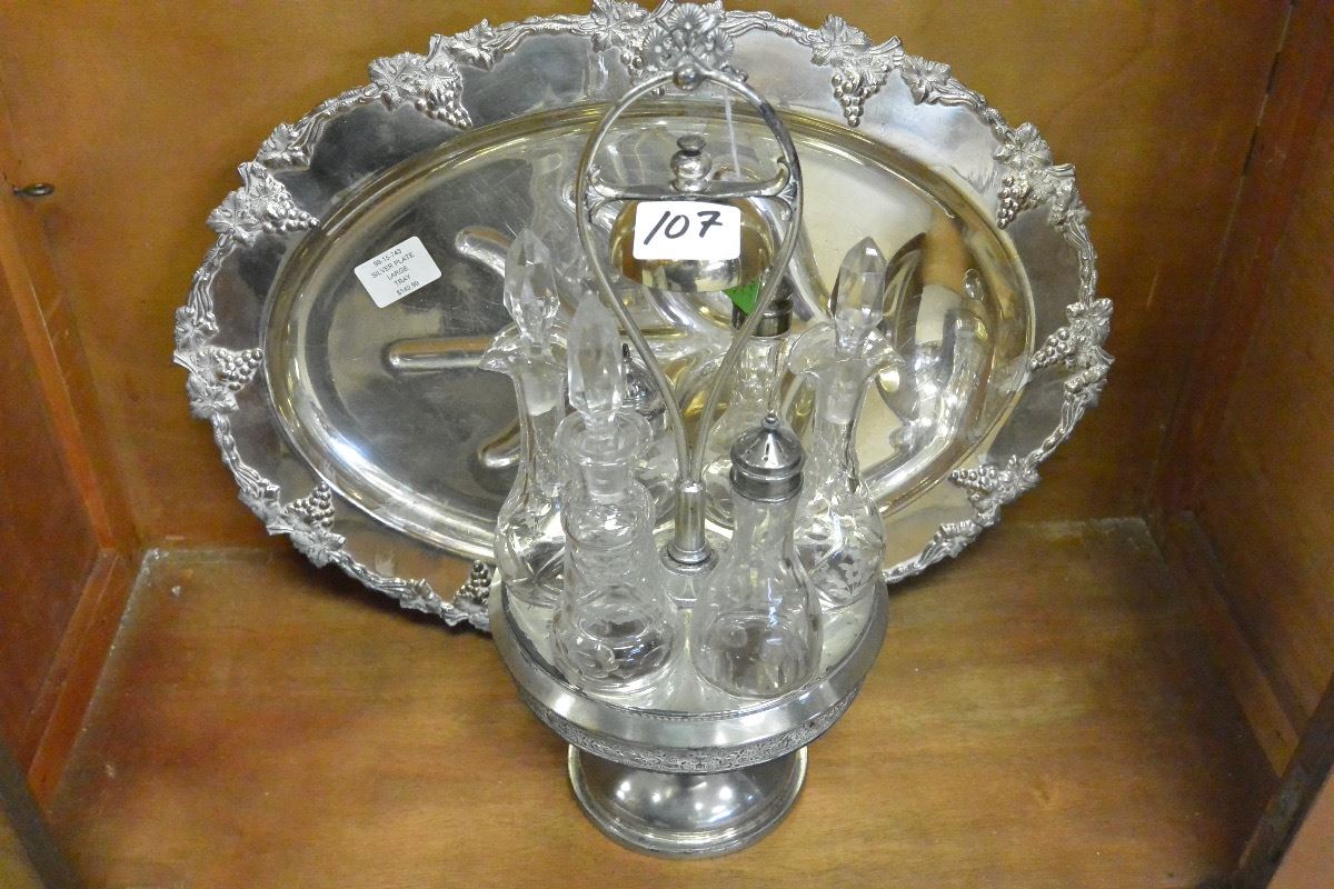 SILVER SERVING ASHET AND VICTORIAN CRUET SET