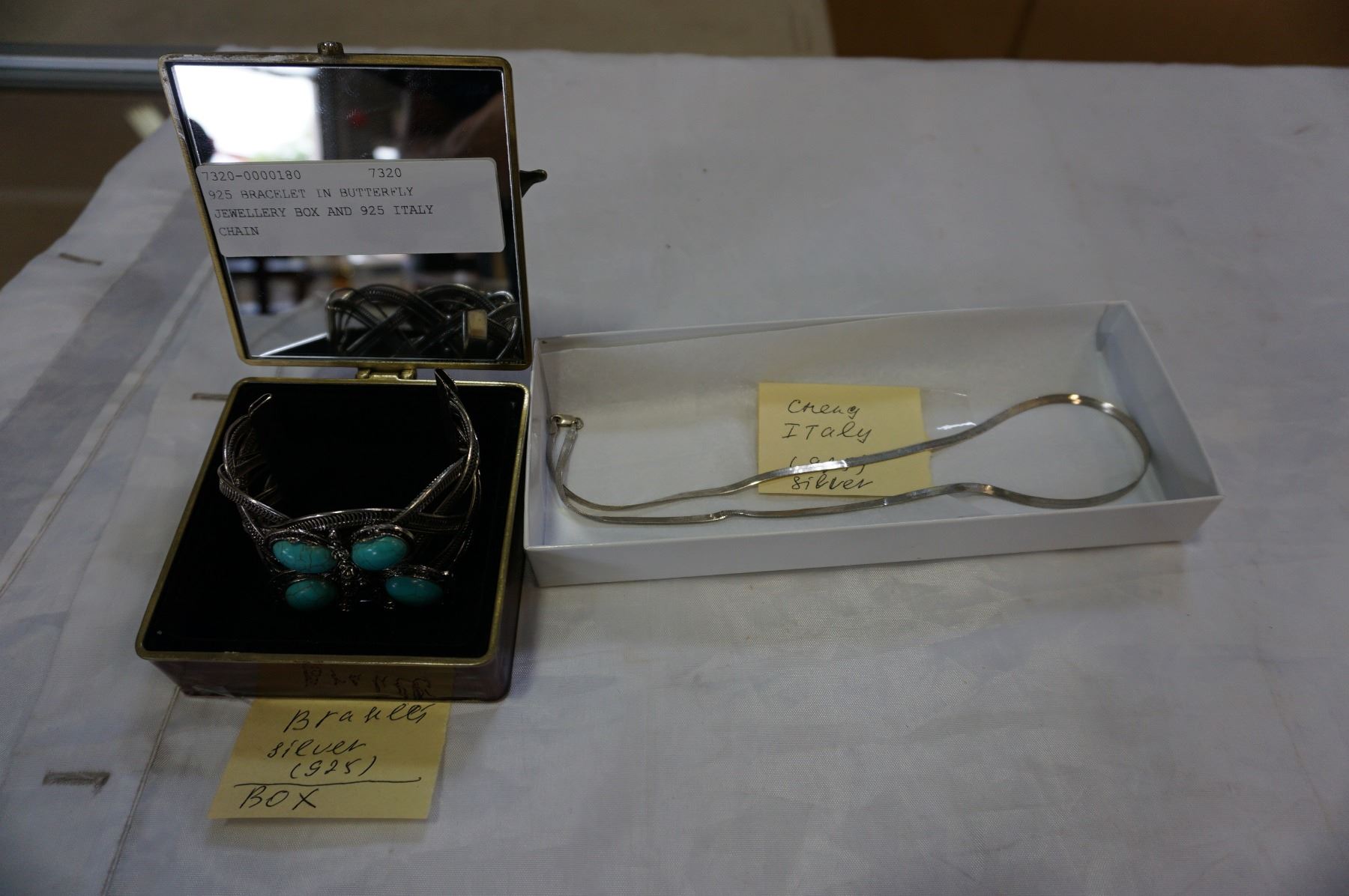 SILVER TONE BRACELET IN BUTTERFLY JEWELLERY BOX AND 925 ITALY CHAIN