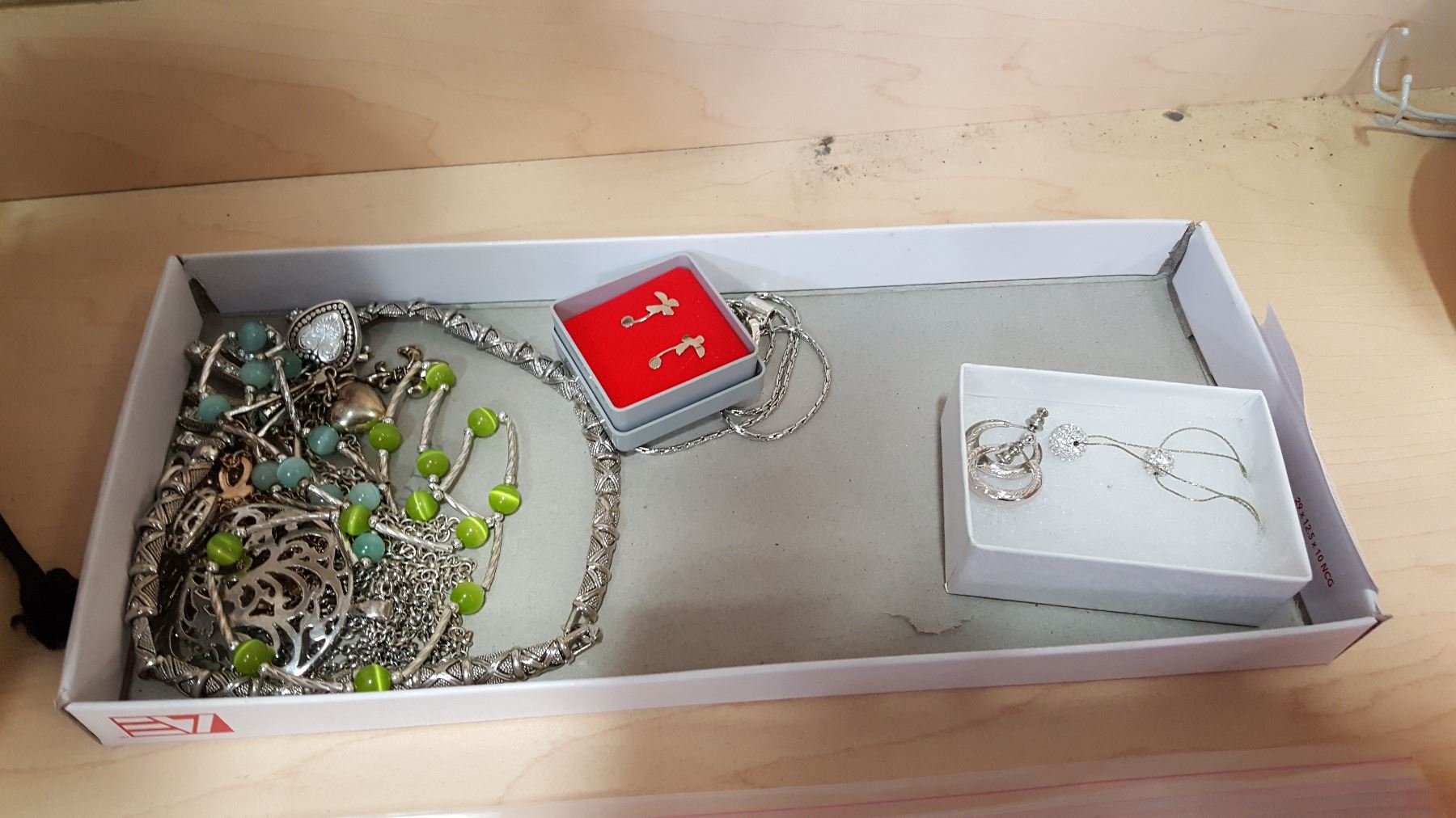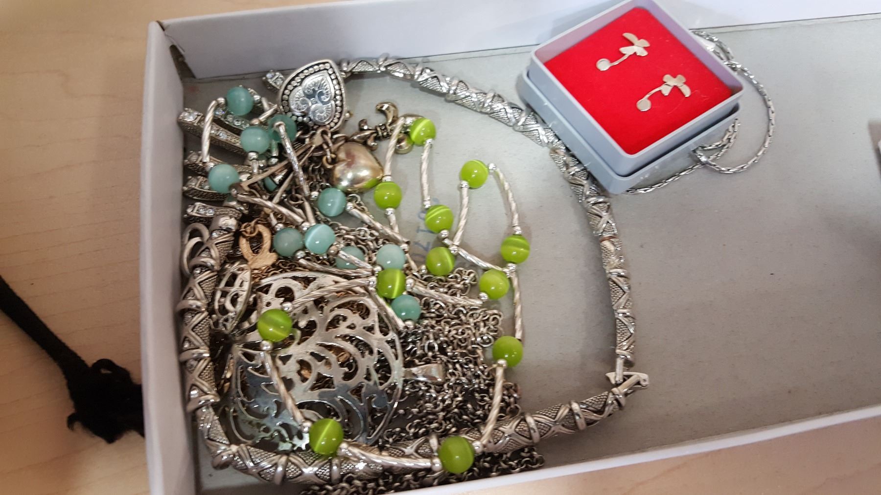SILVER TONE JEWELRY, ANKLETS, NECKLACE AND EARRINGS, ETC.