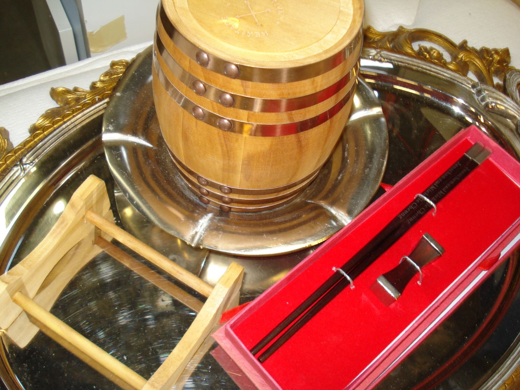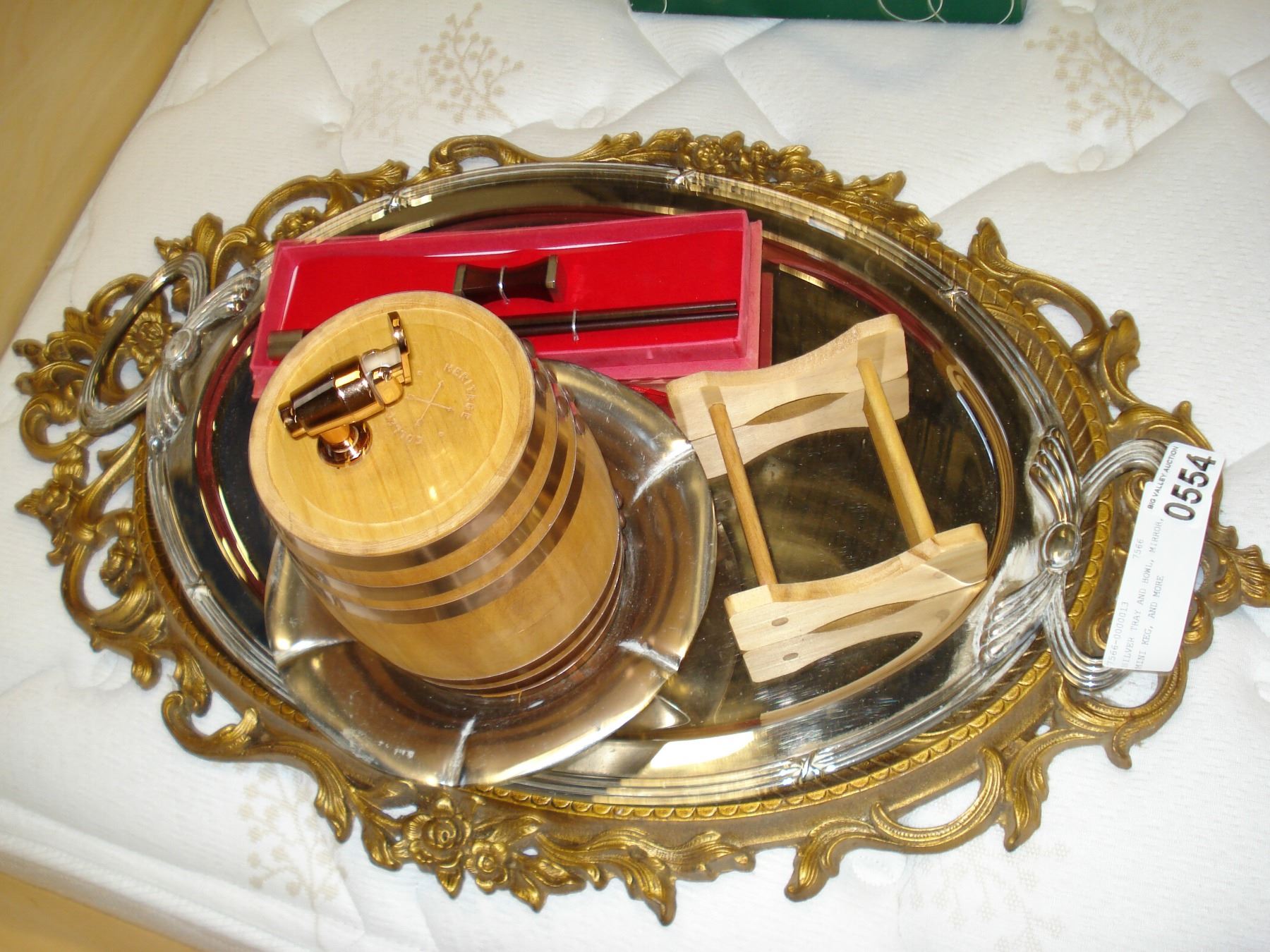 SILVER TRAY AND BOWL, MIRROR, MINI KEG, AND MORE