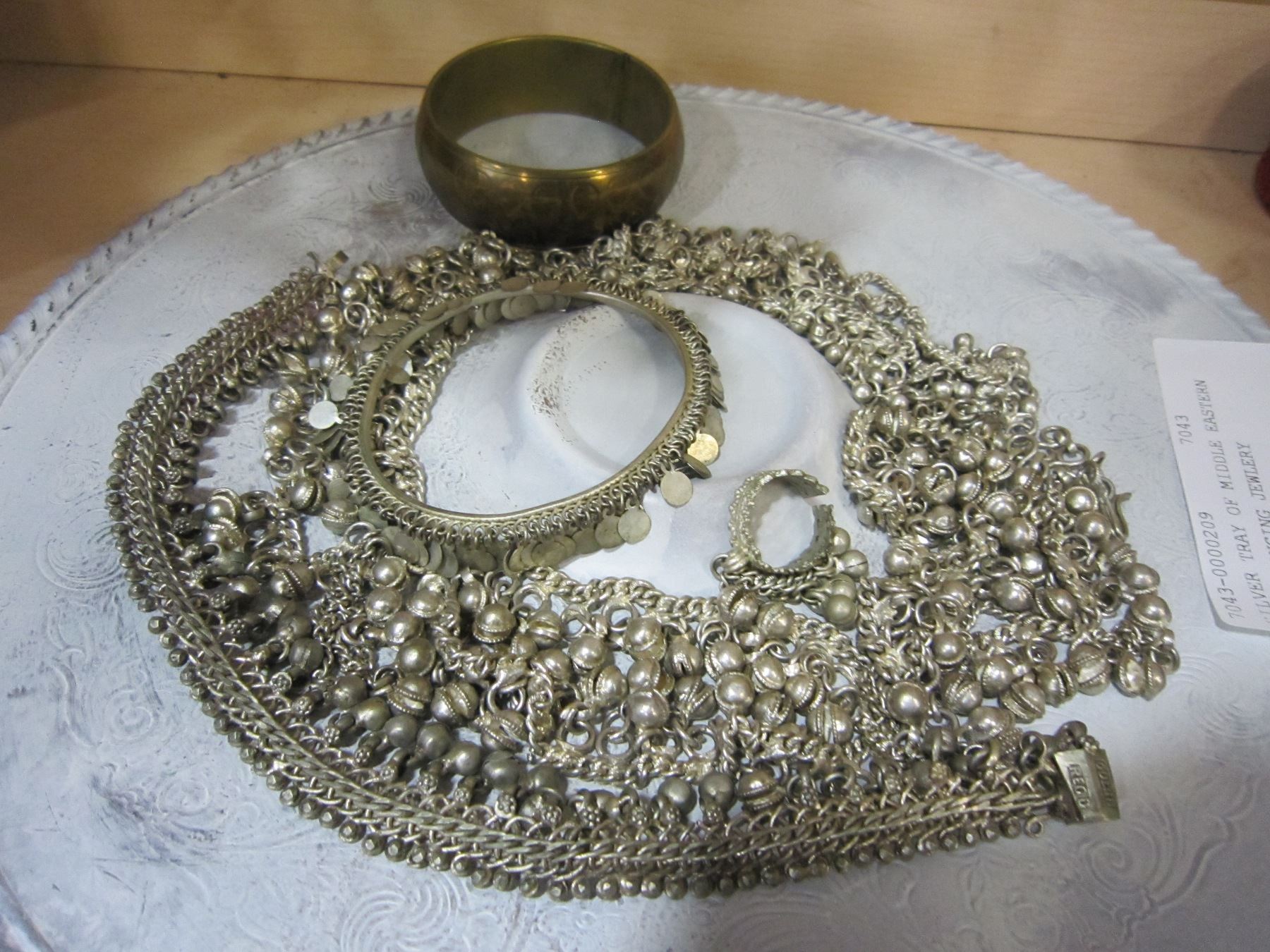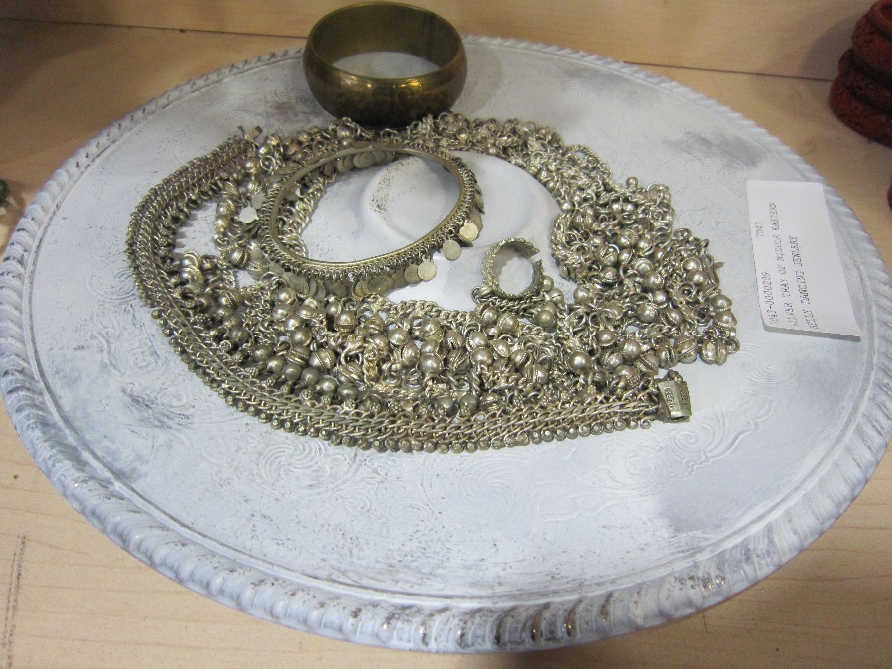 SILVER TRAY OF MIDDLE EASTERN BELLY DANCING JEWLERY