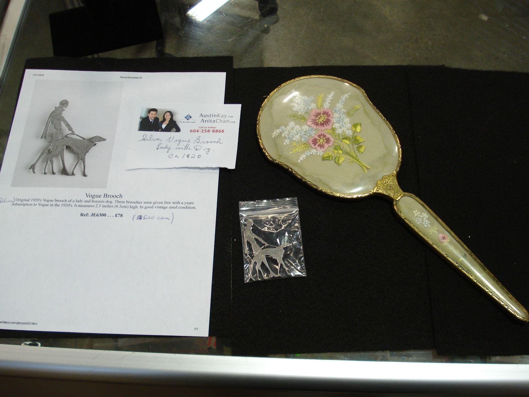 SILVER VOGUE BROACH 1920 AND VINTAGE VANITY MIRROR